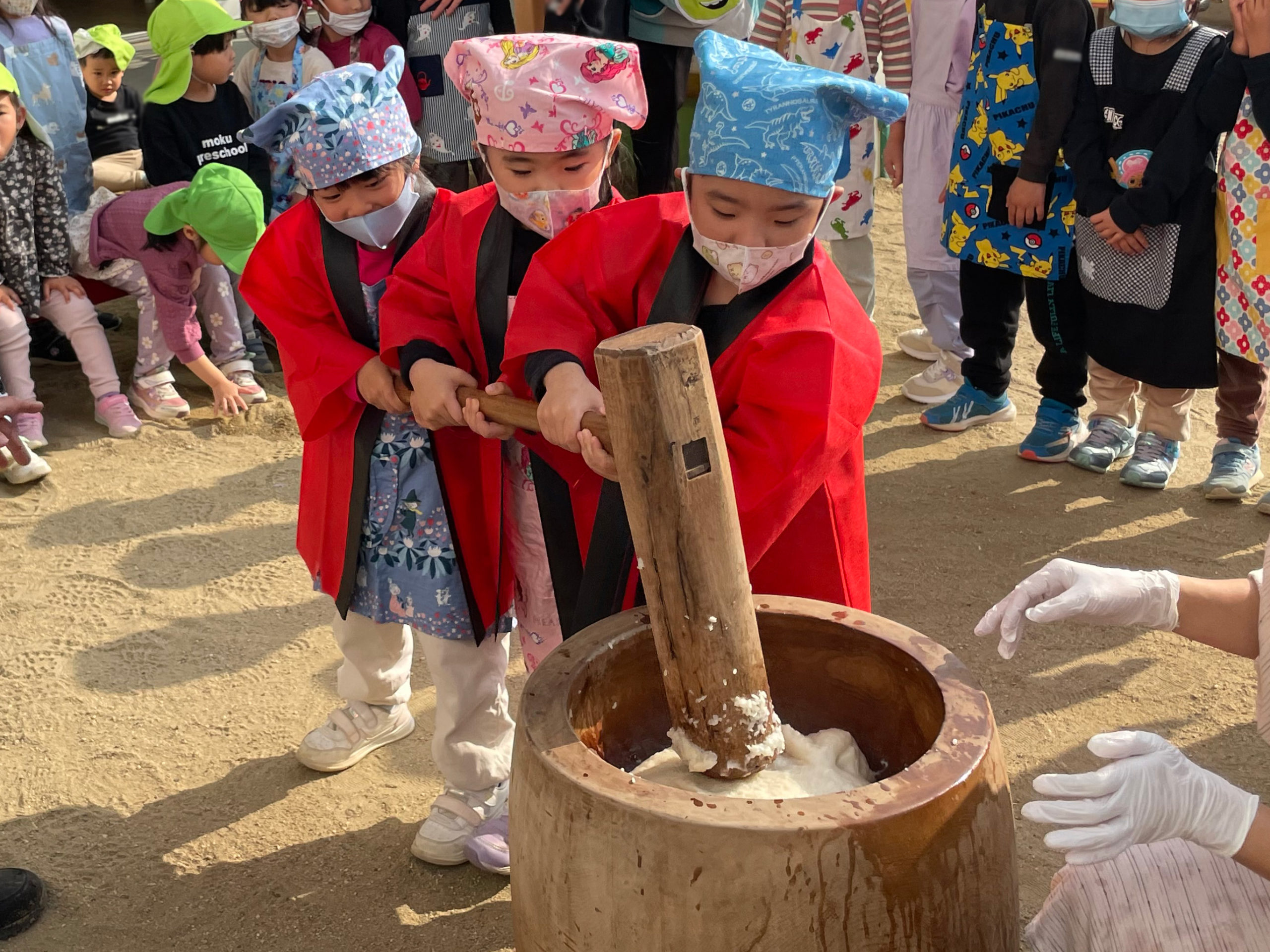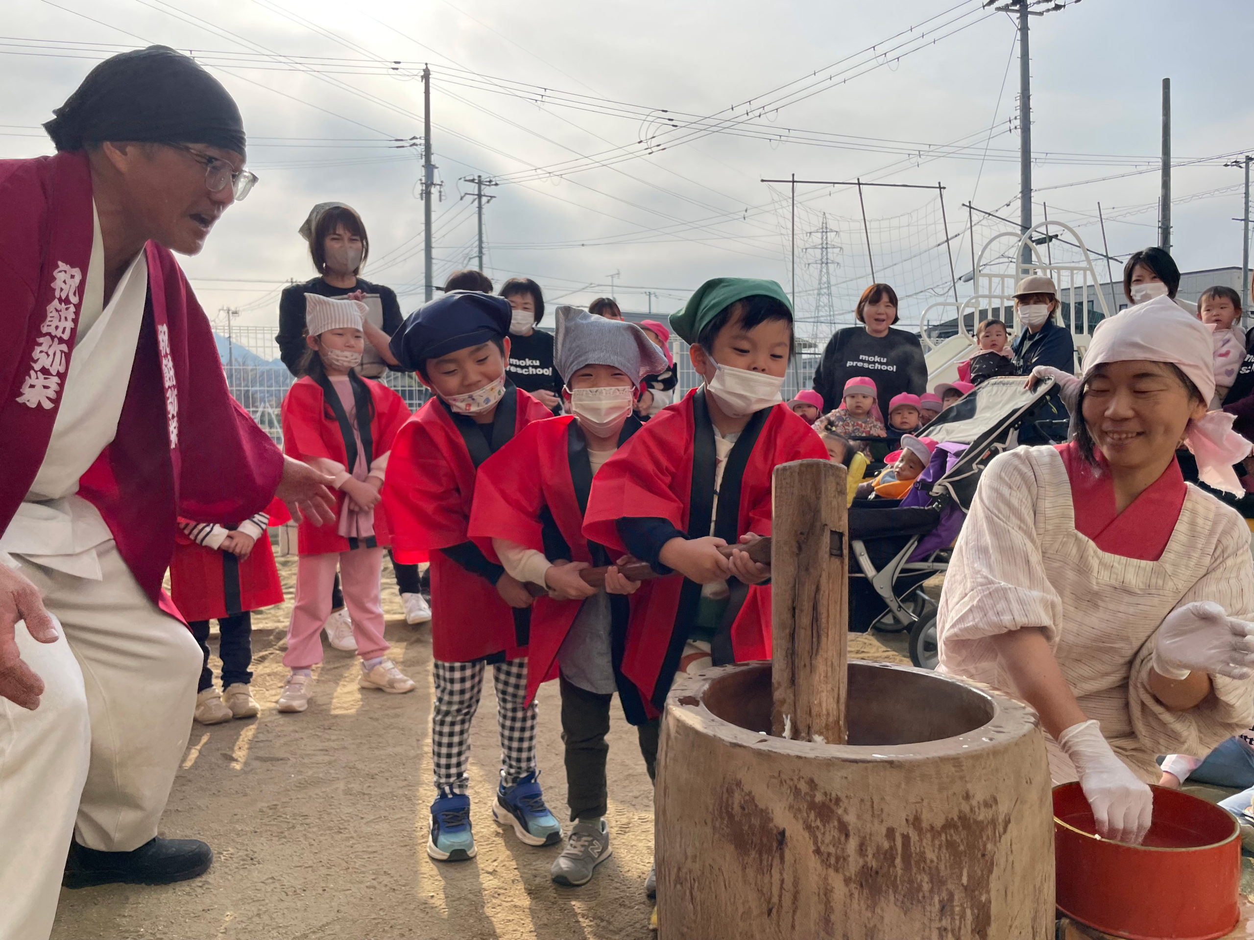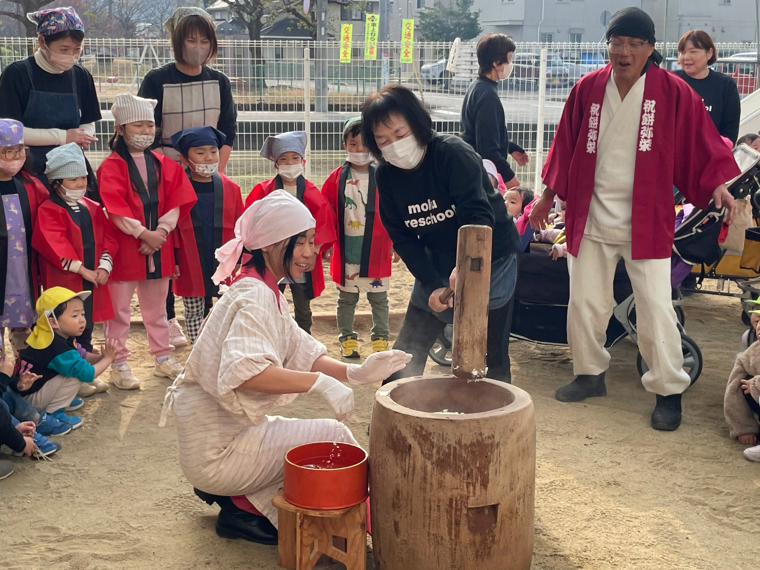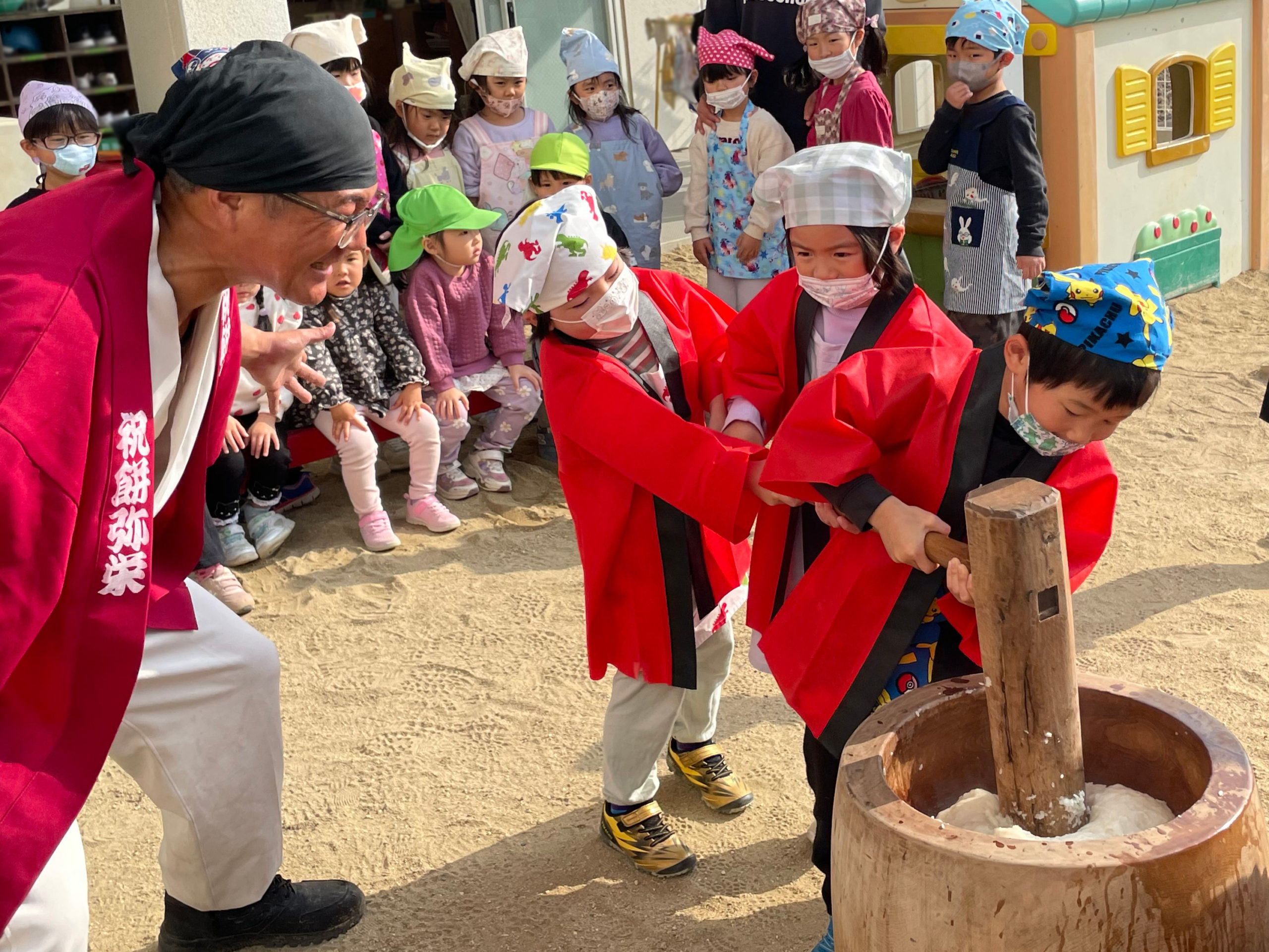 本園とアトリエの4・5歳児がお餅つきをしました✨