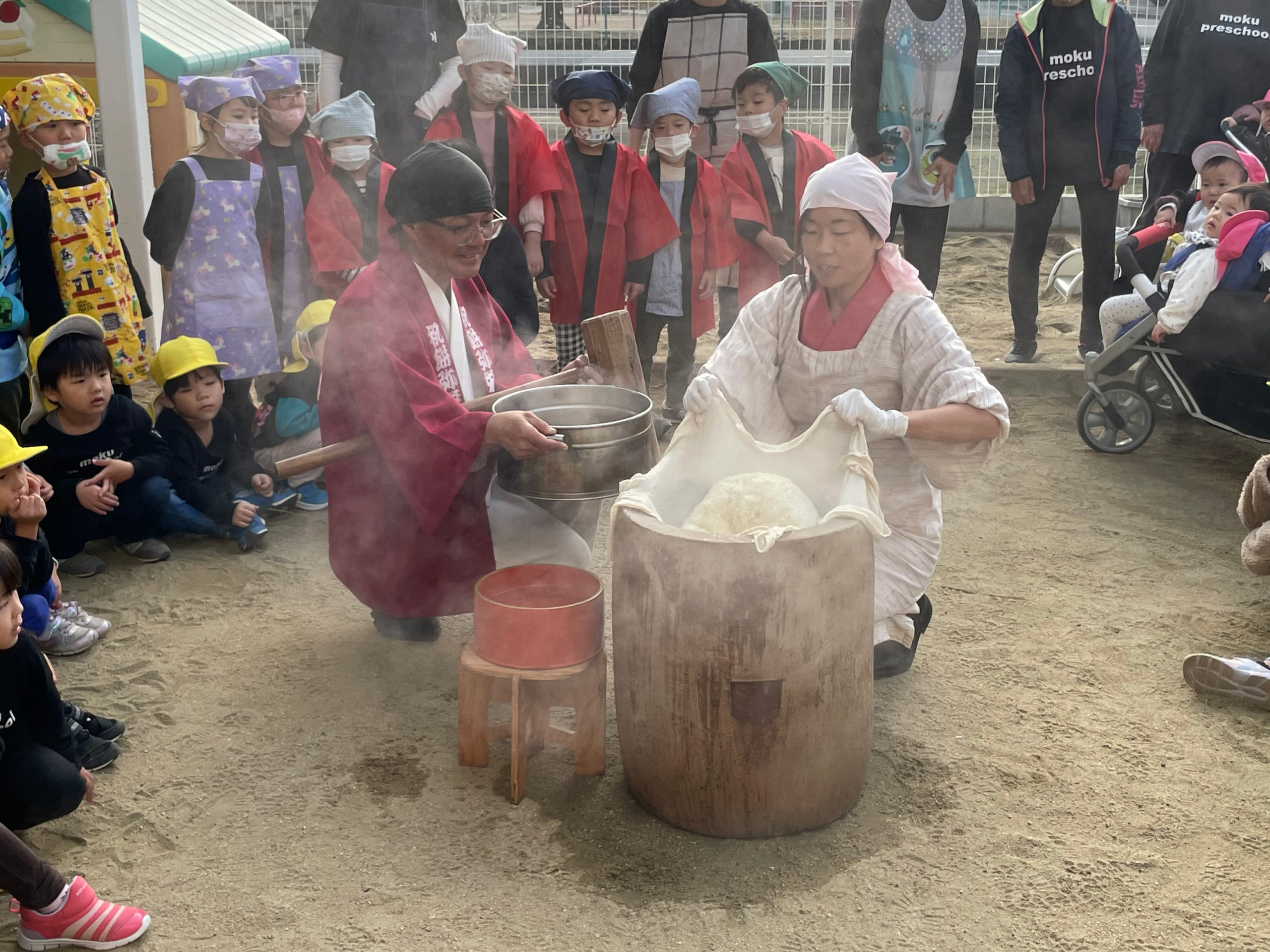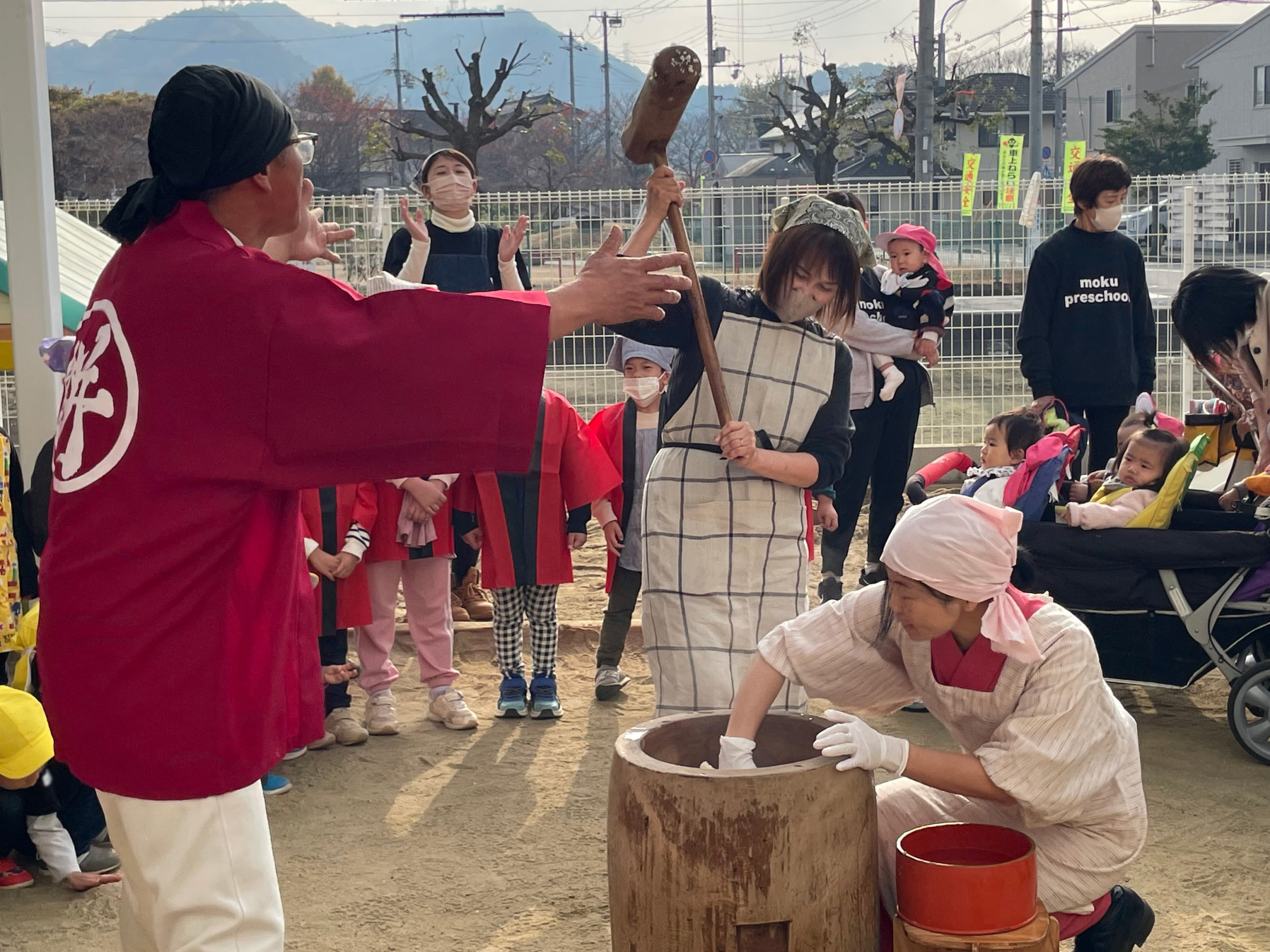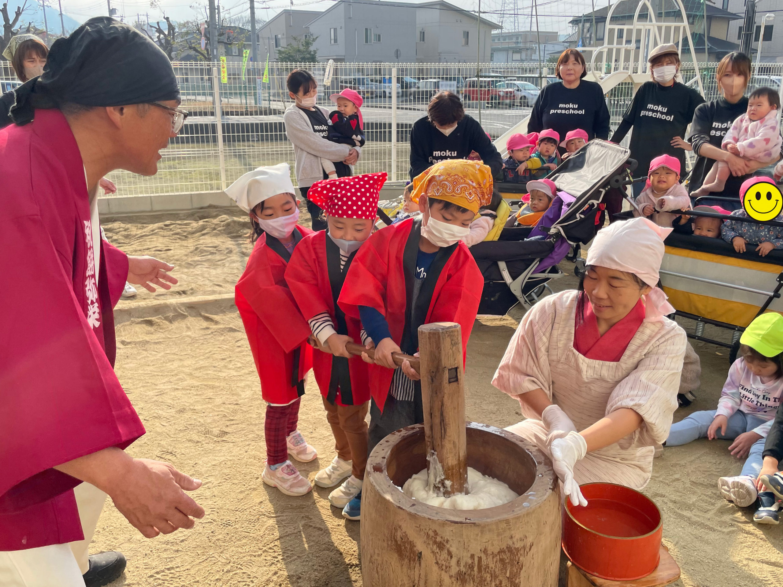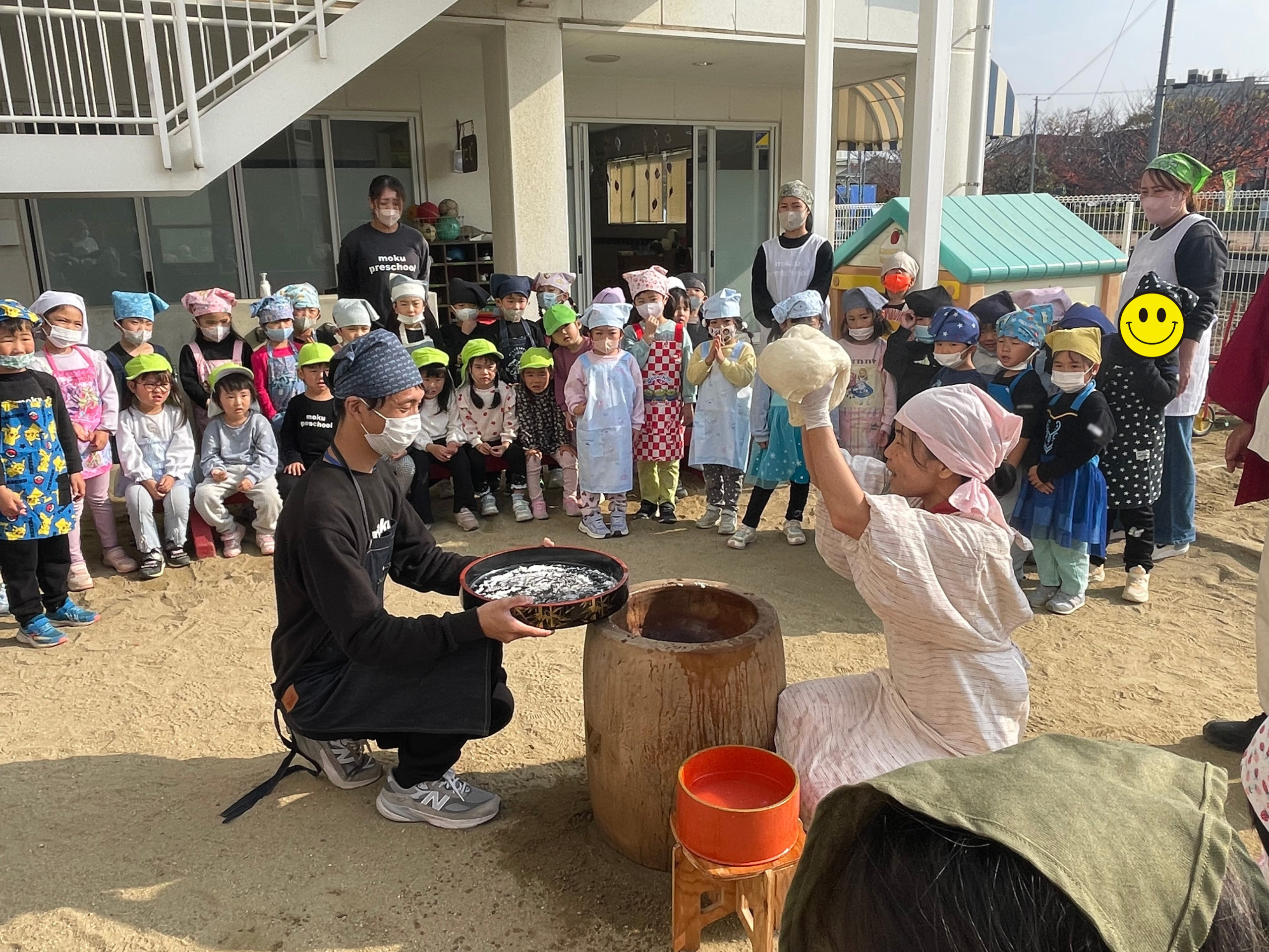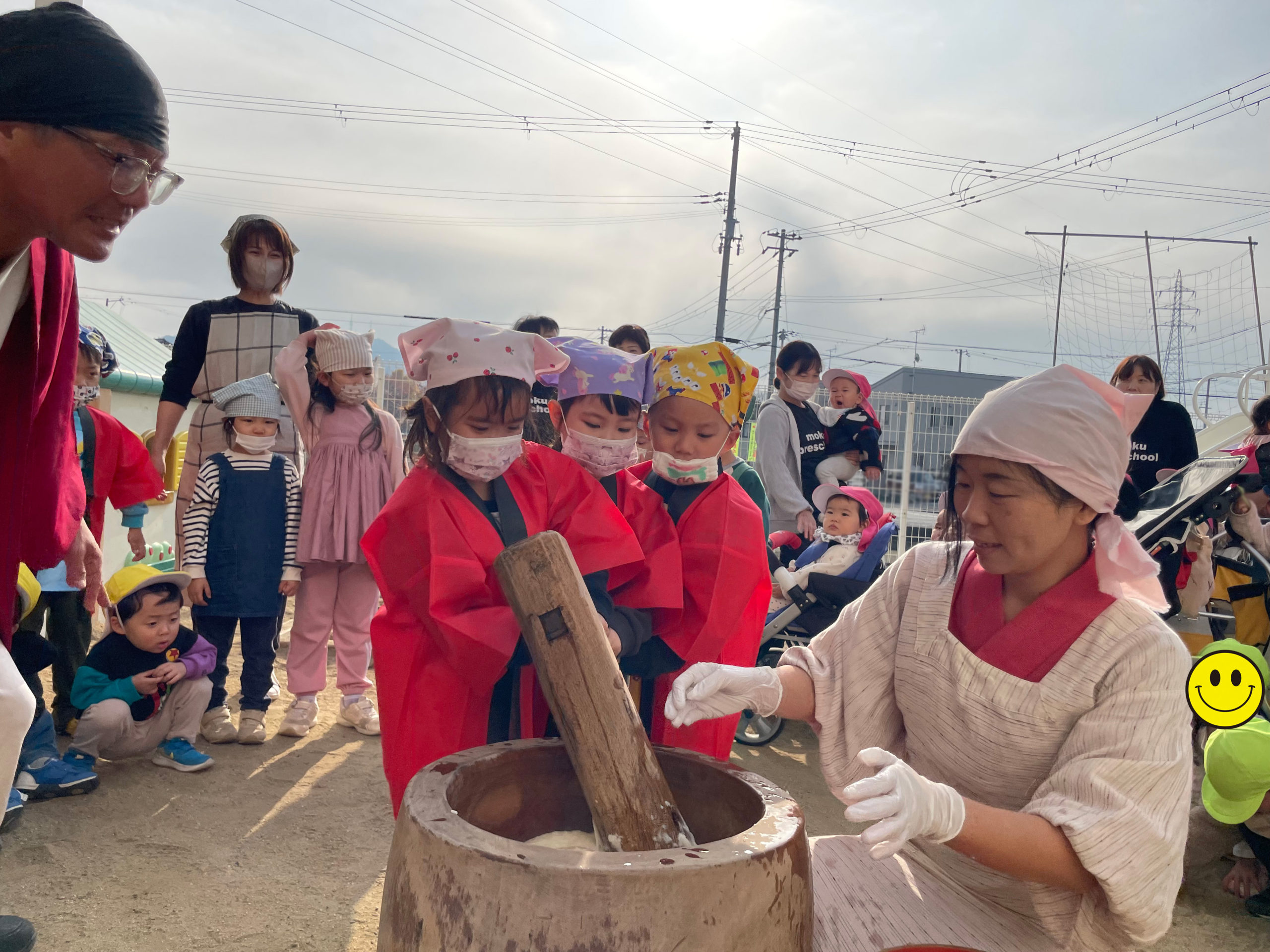 本園とアトリエの4・5歳児がお餅つきをしました✨