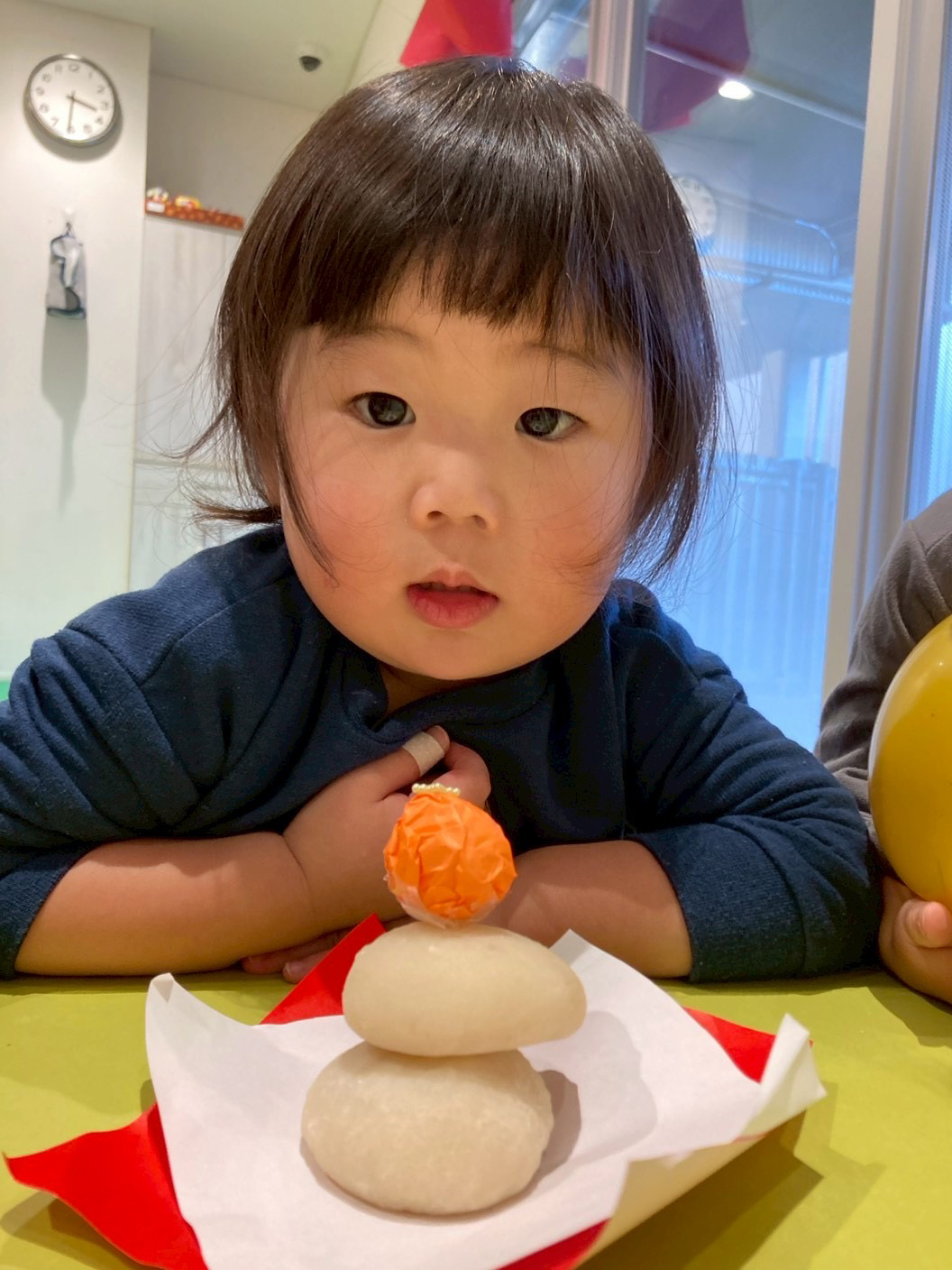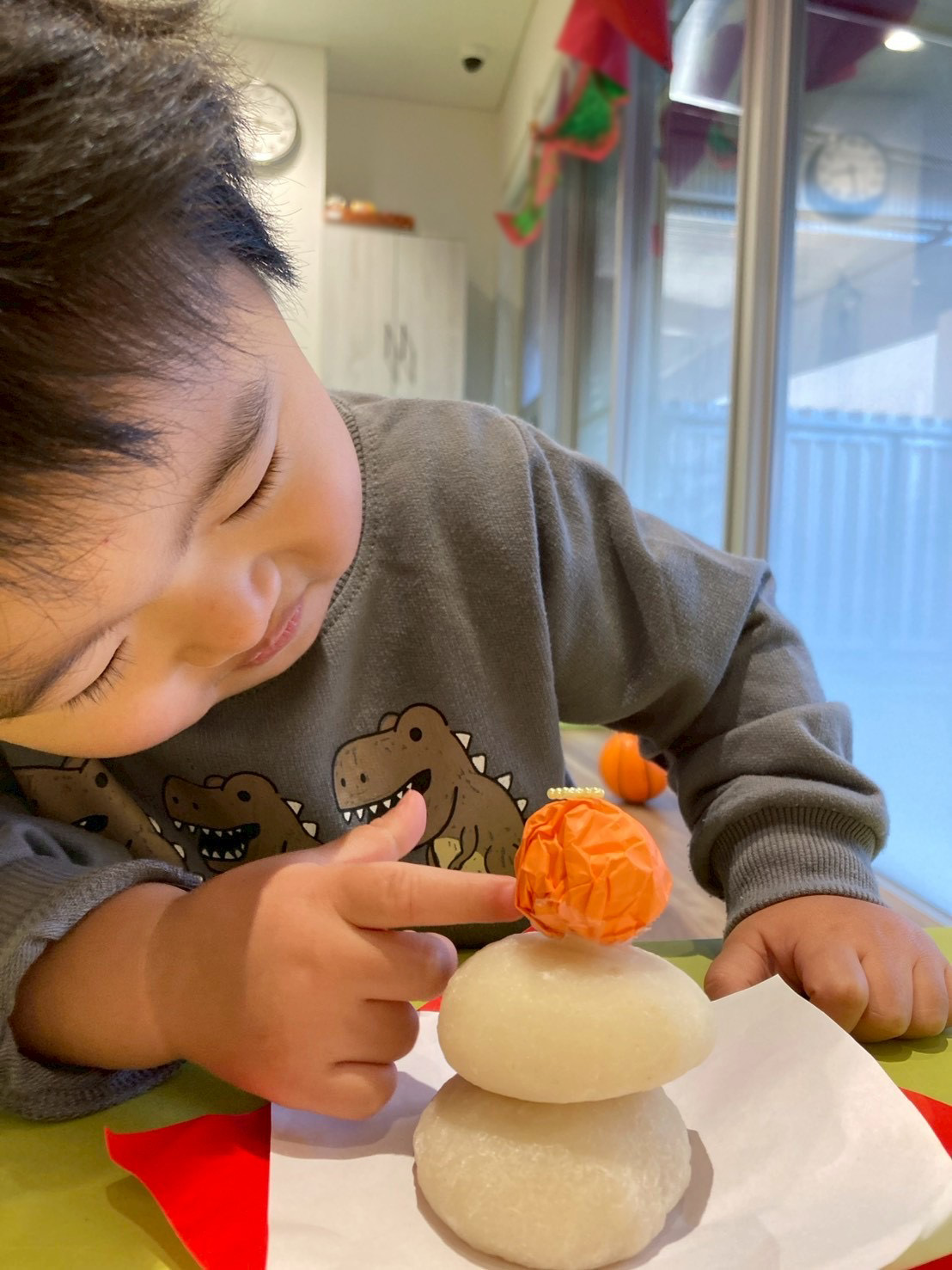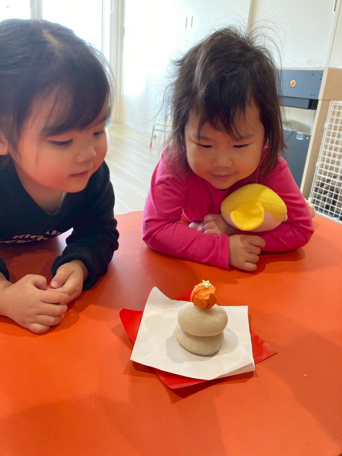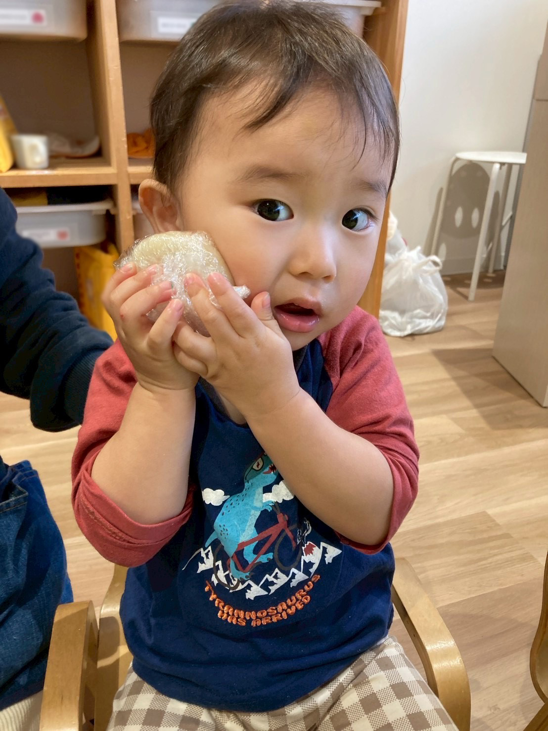 お兄ちゃん・お姉ちゃんがついてくれたおもちを触ってみました☺️
