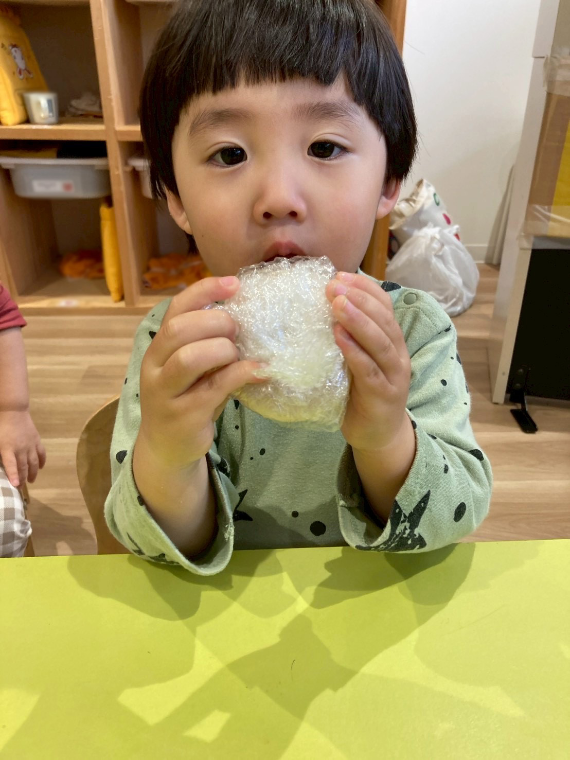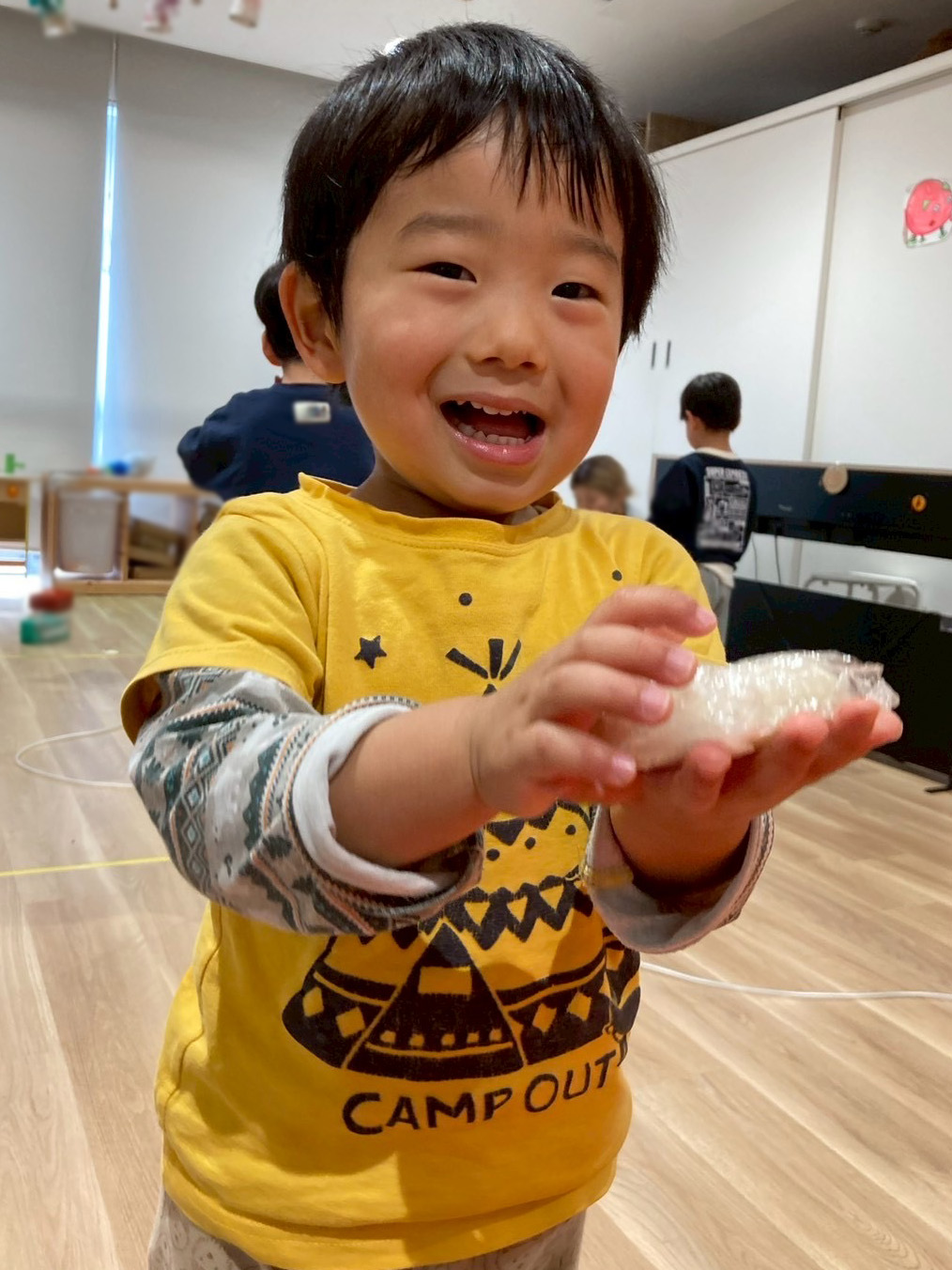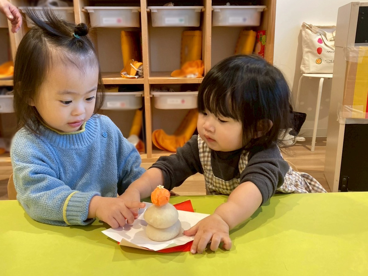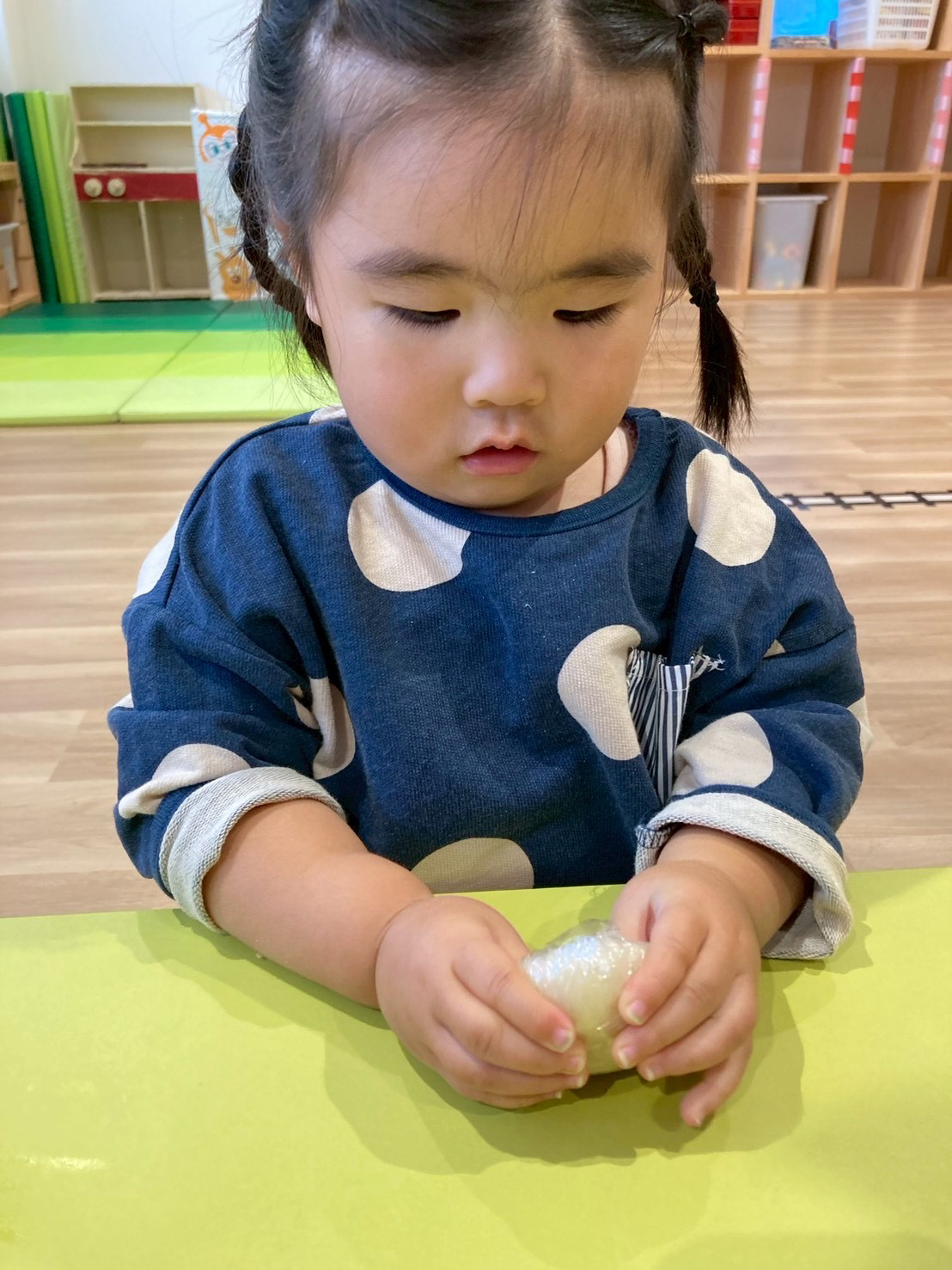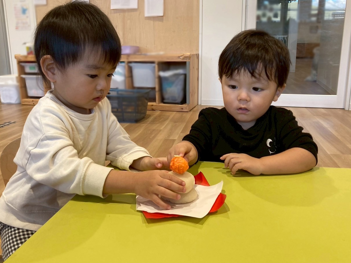 お兄ちゃん・お姉ちゃんがついてくれたおもちを触ってみました☺️