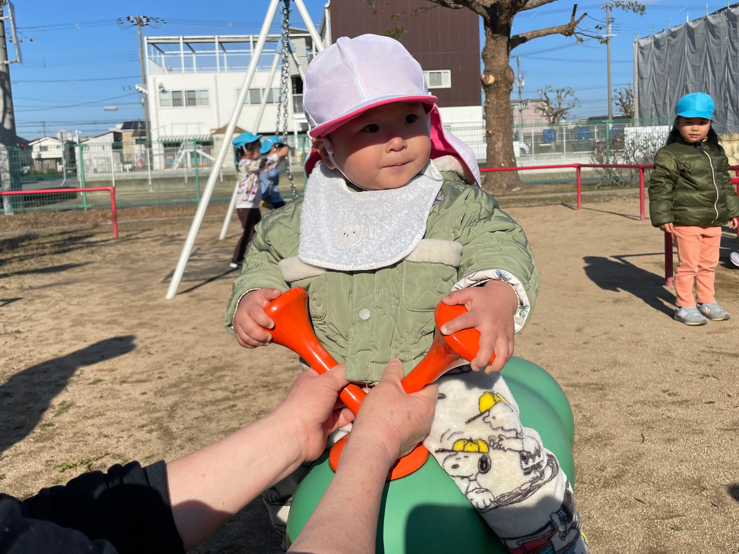 日中、暖かい日はお外で元気に遊んでいます!