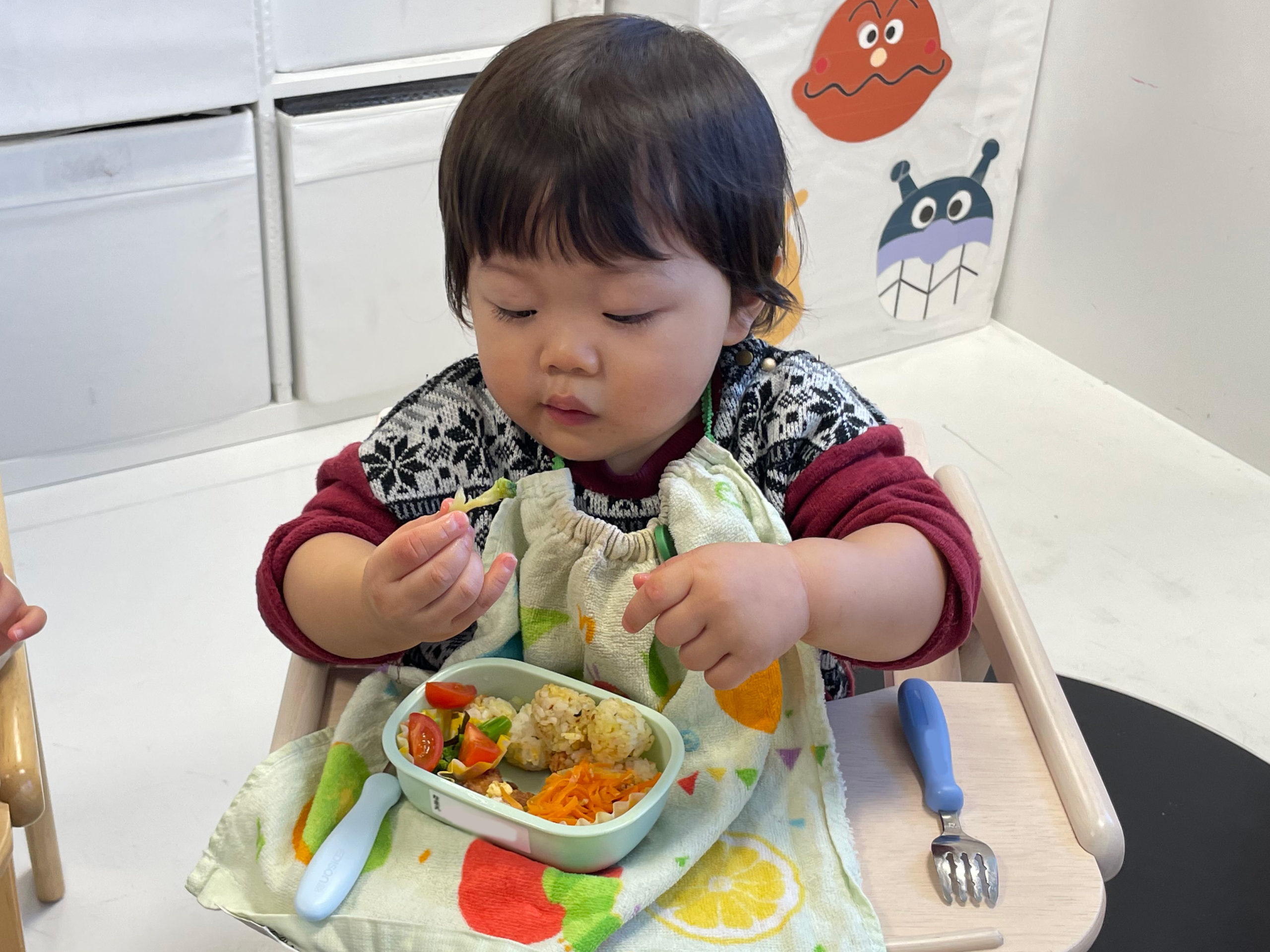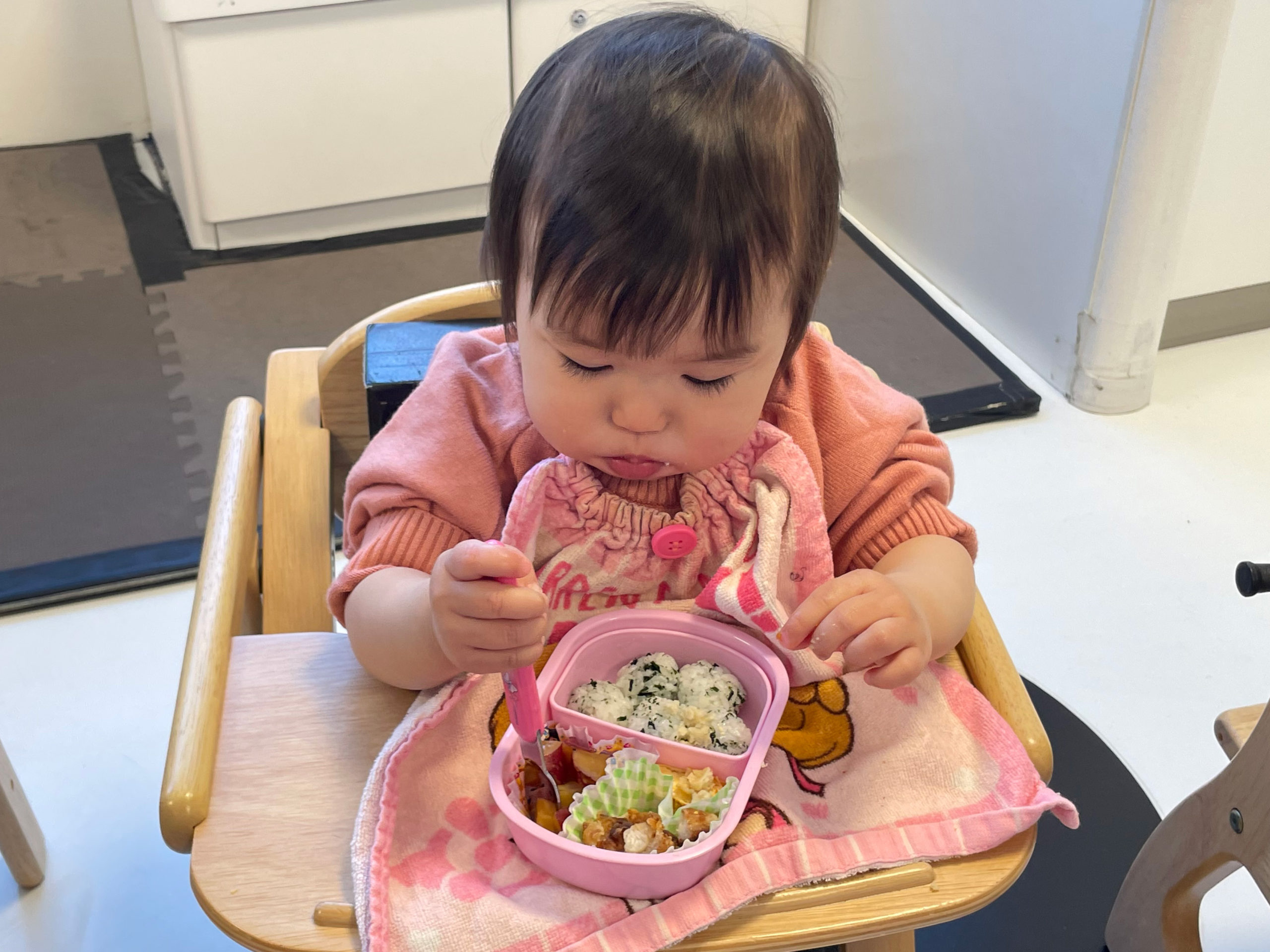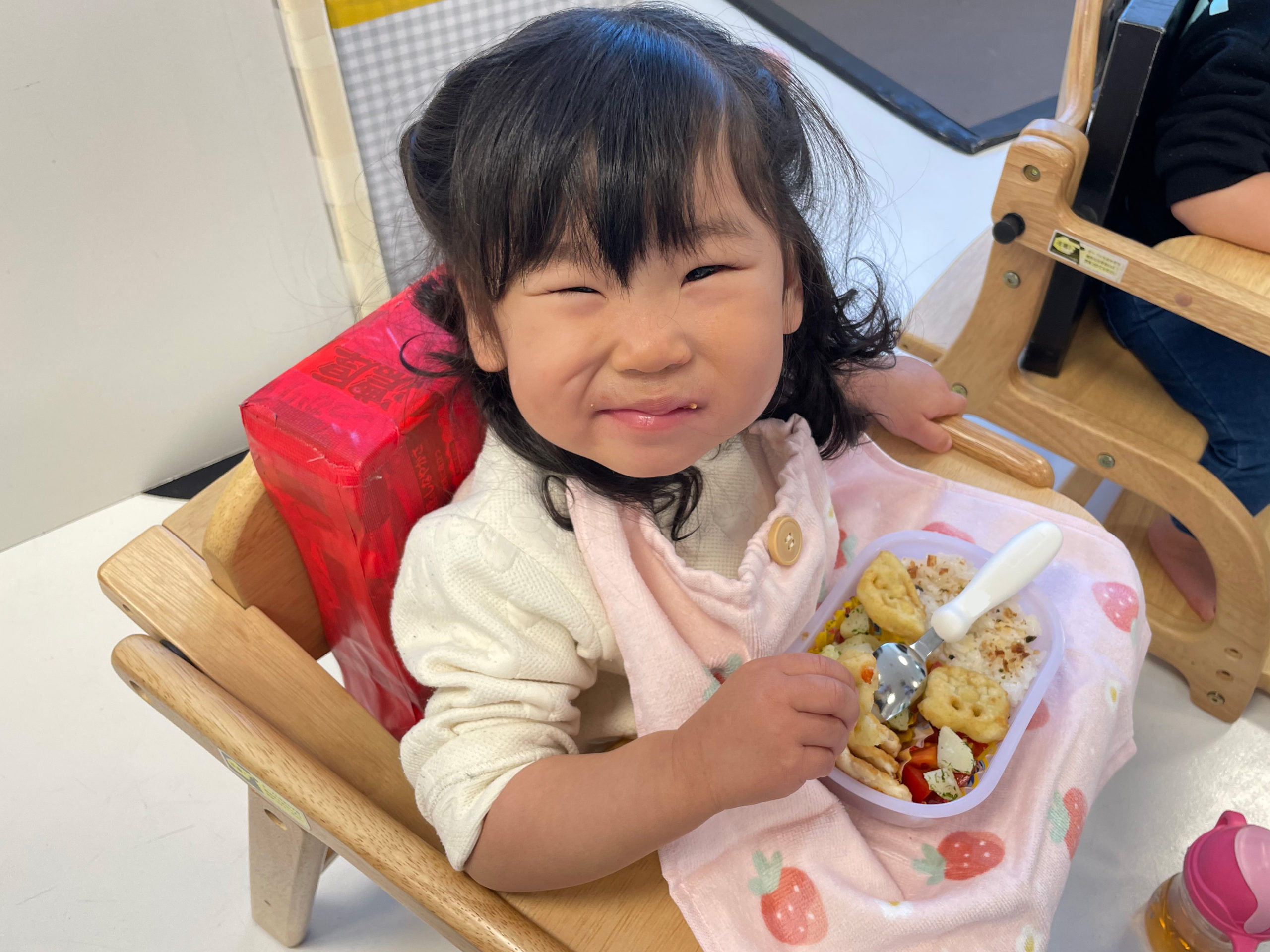 お部屋に戻ってみんなで給食を食べます🍙