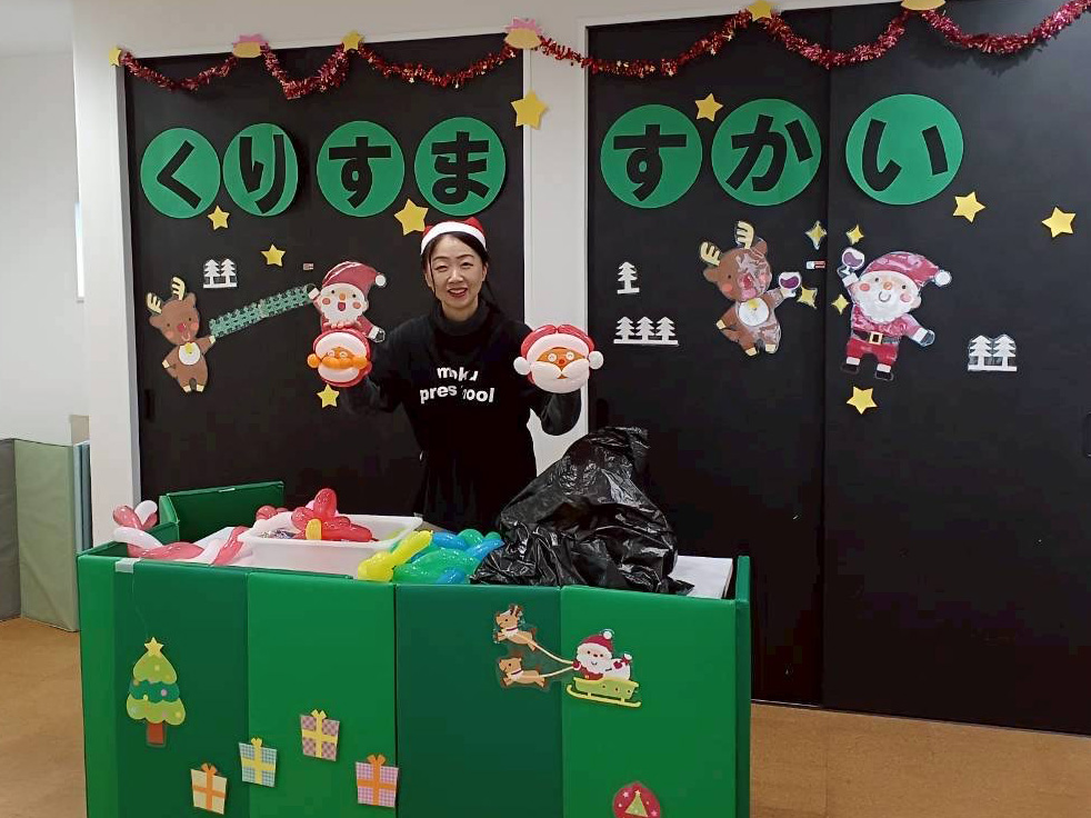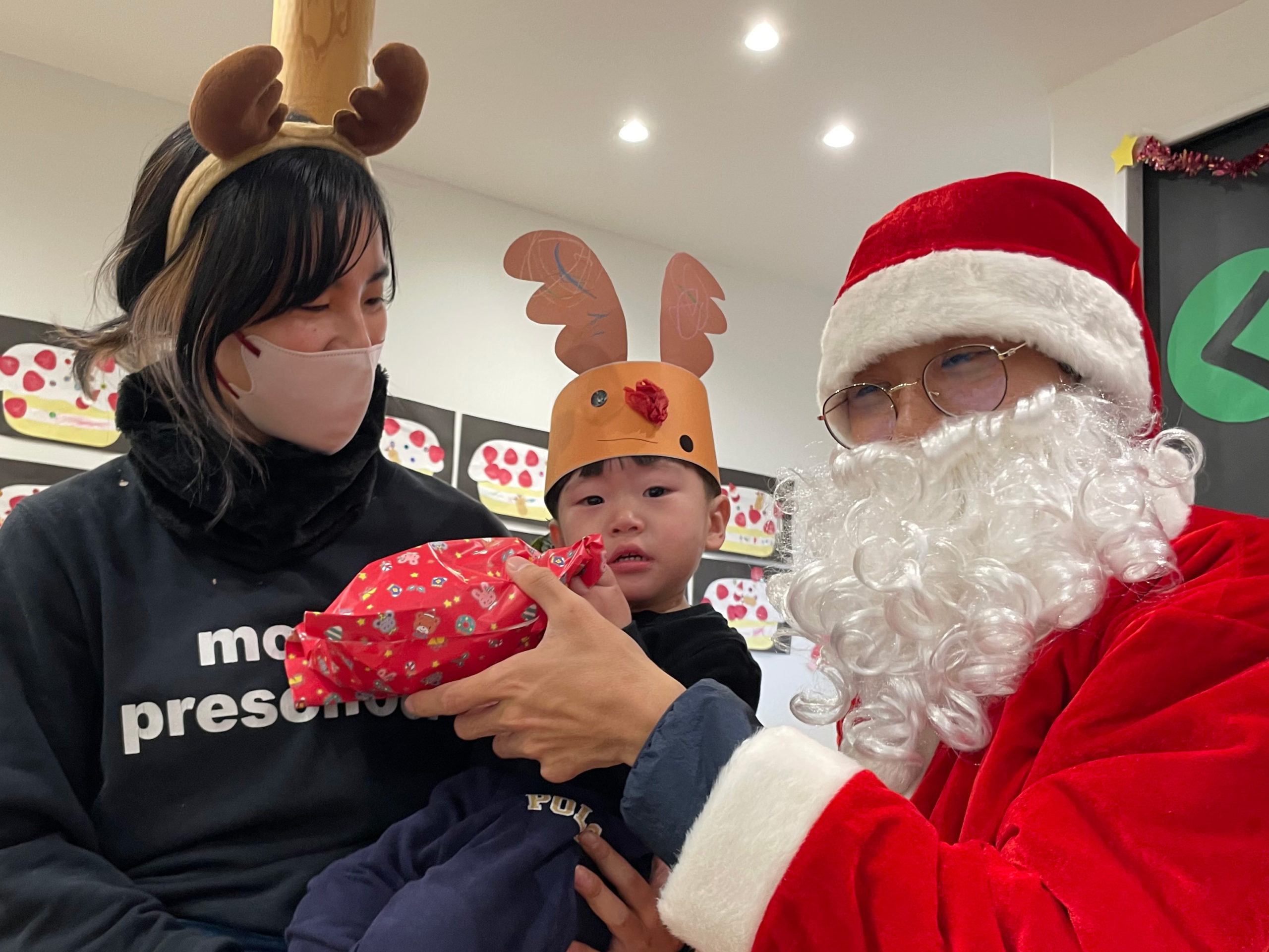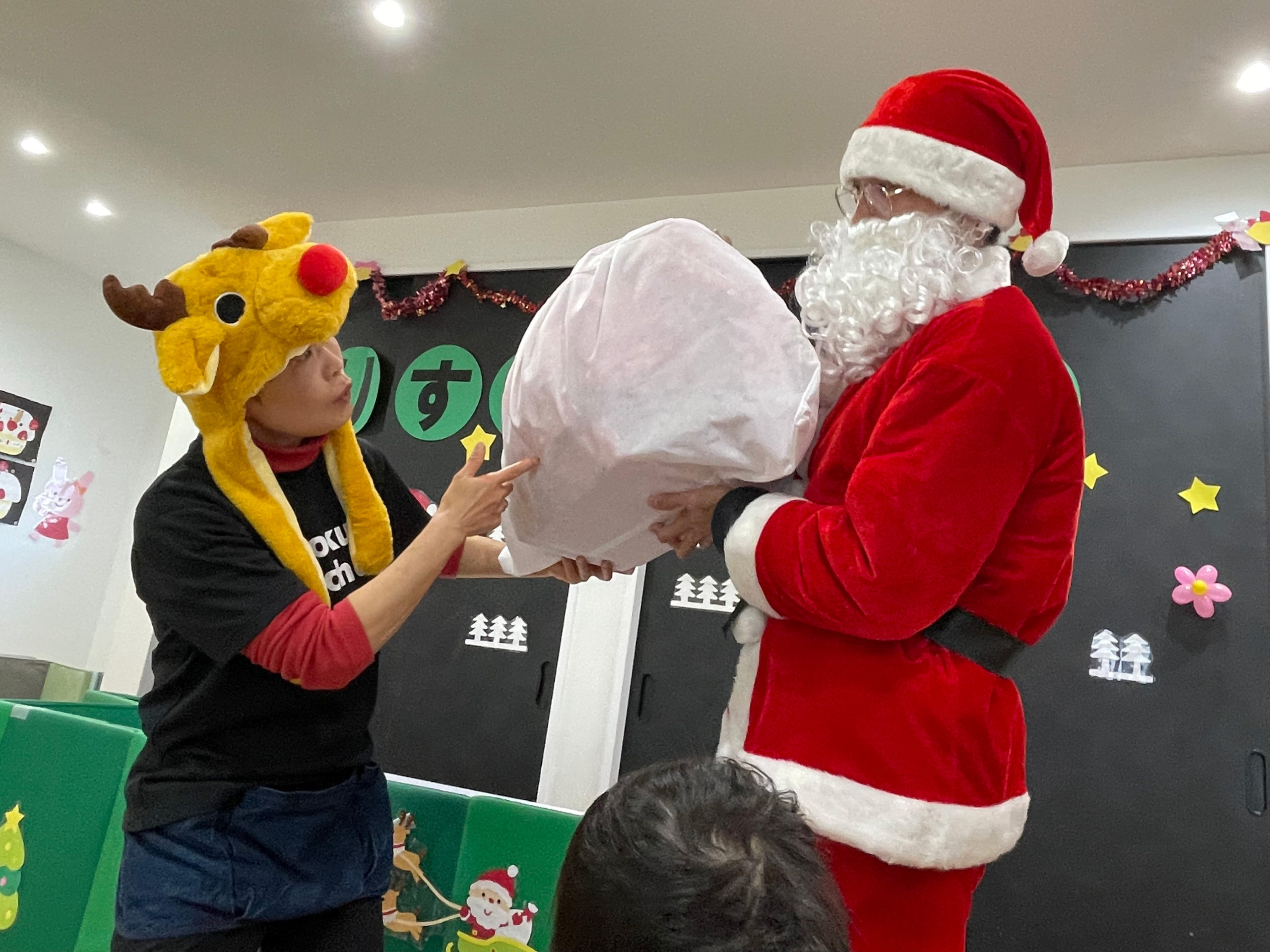 すると、どこからか鈴の音が聞こえてきて、サンタさんの登場✨