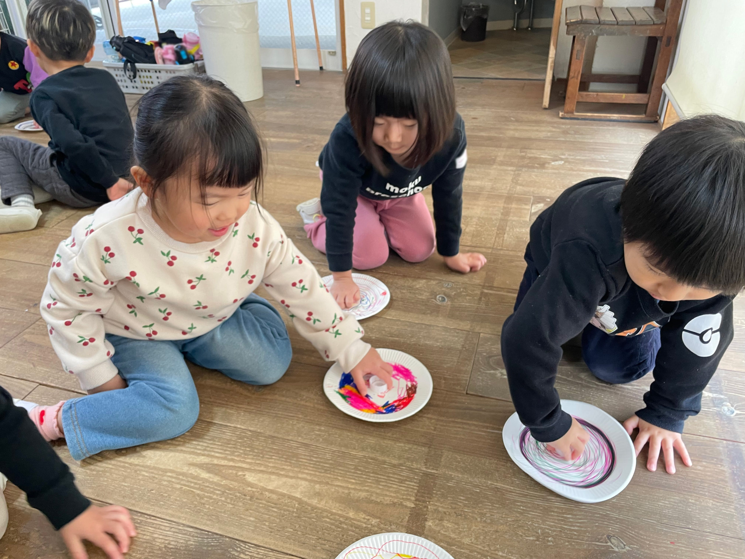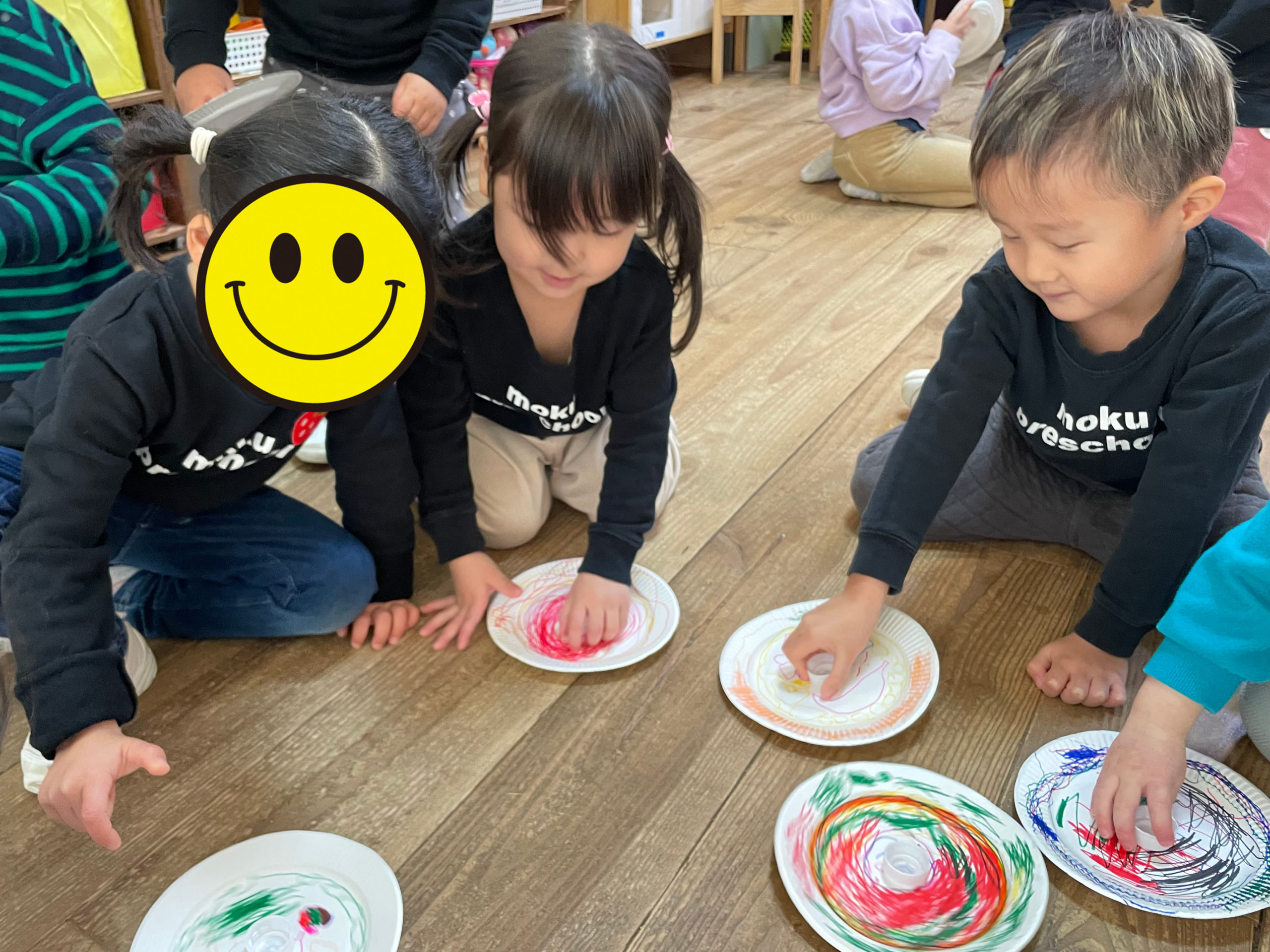 自分たちで作ったこまで遊ぶの楽しかったね❣️