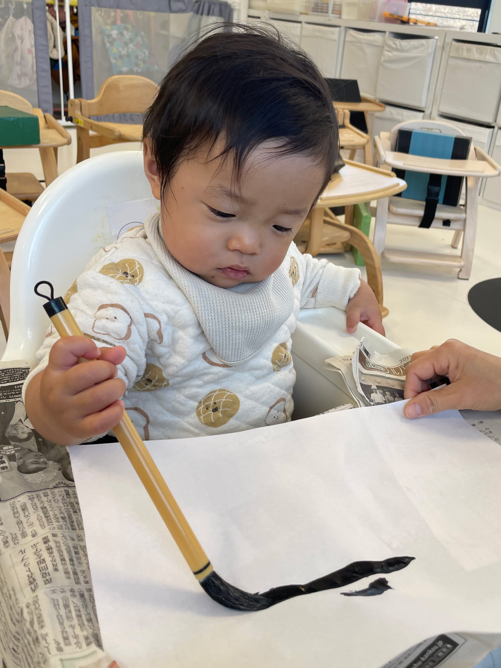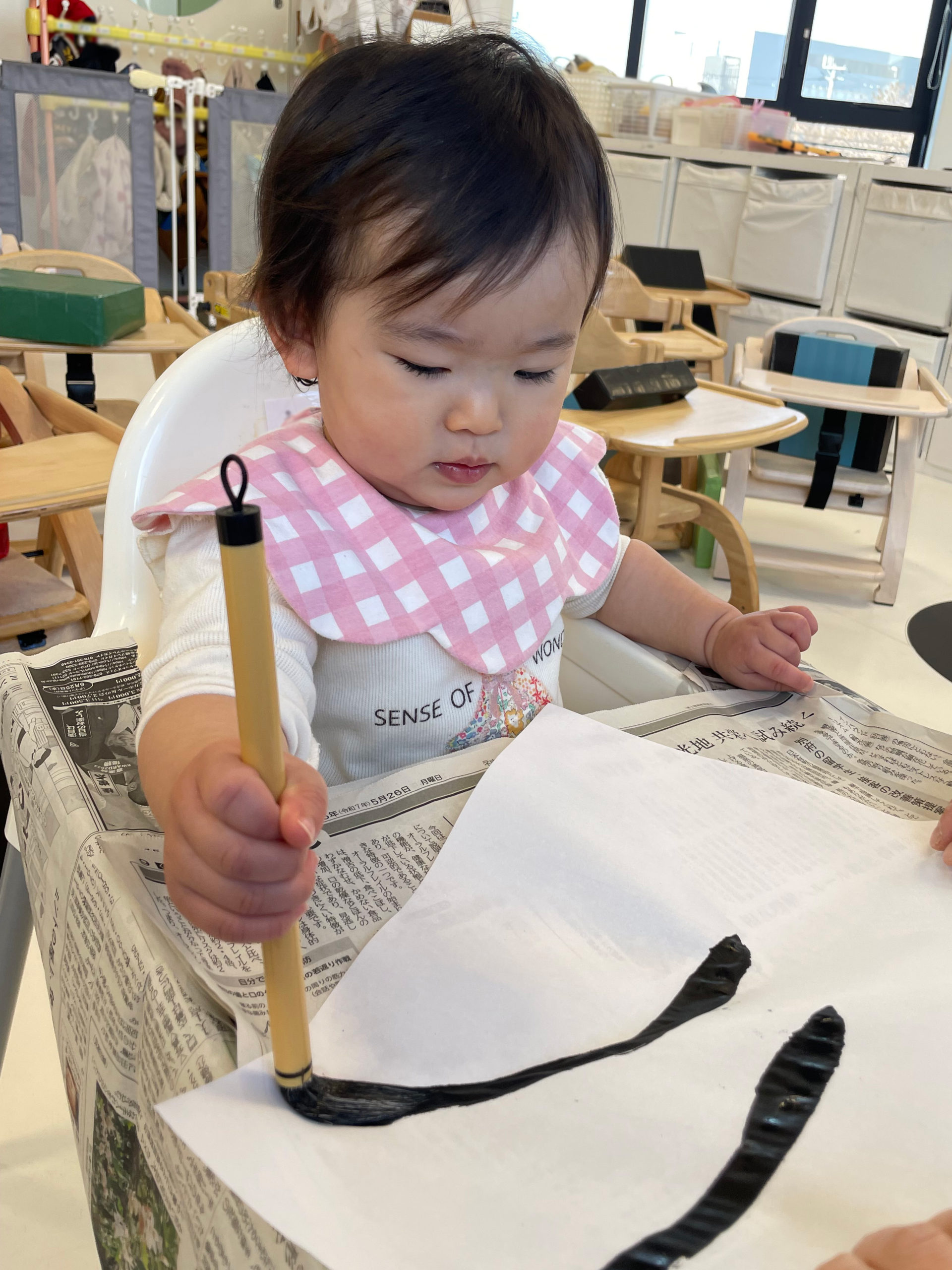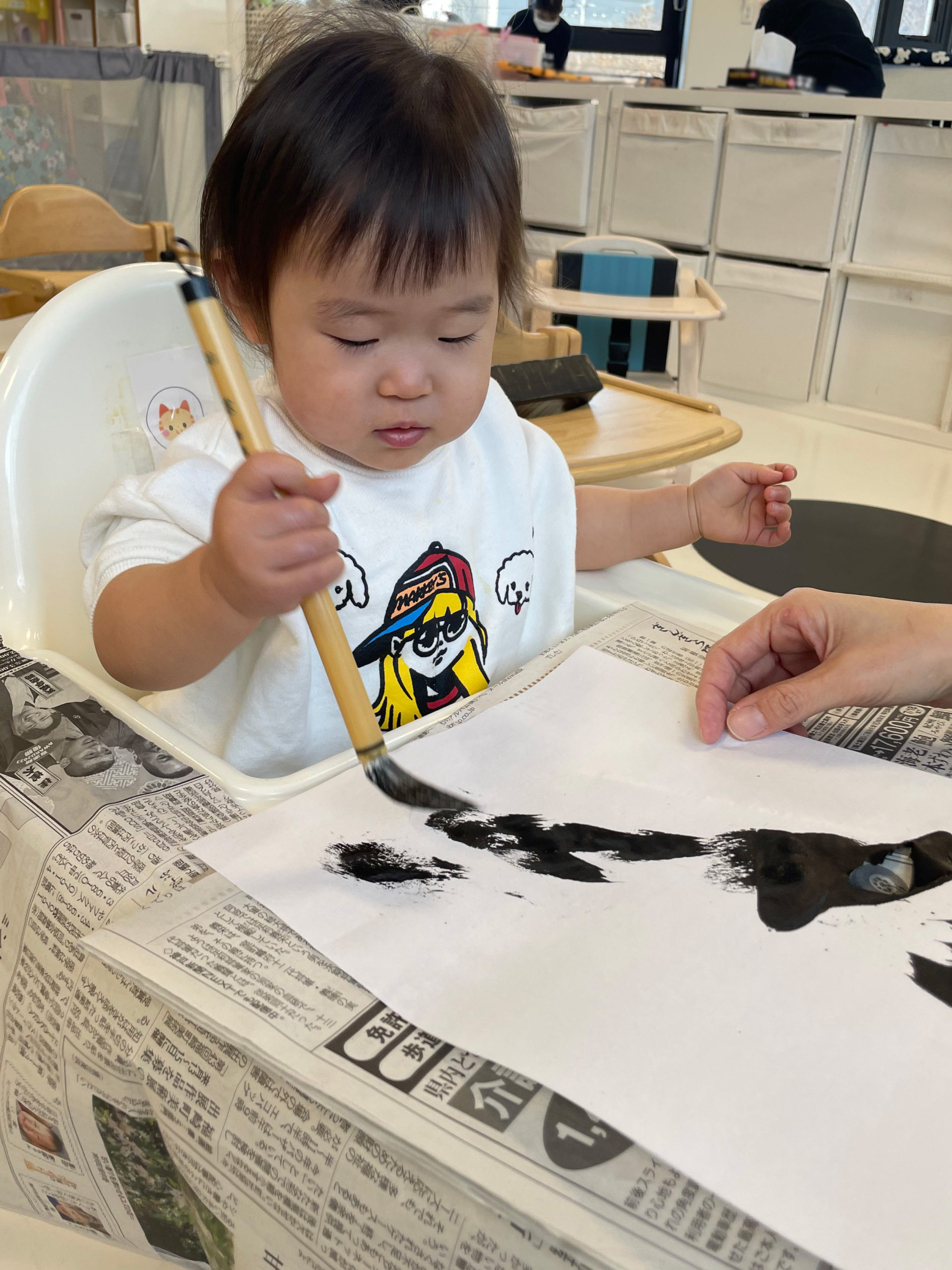 先生に墨汁がついた筆をもらって、いざ握ってみると・・・