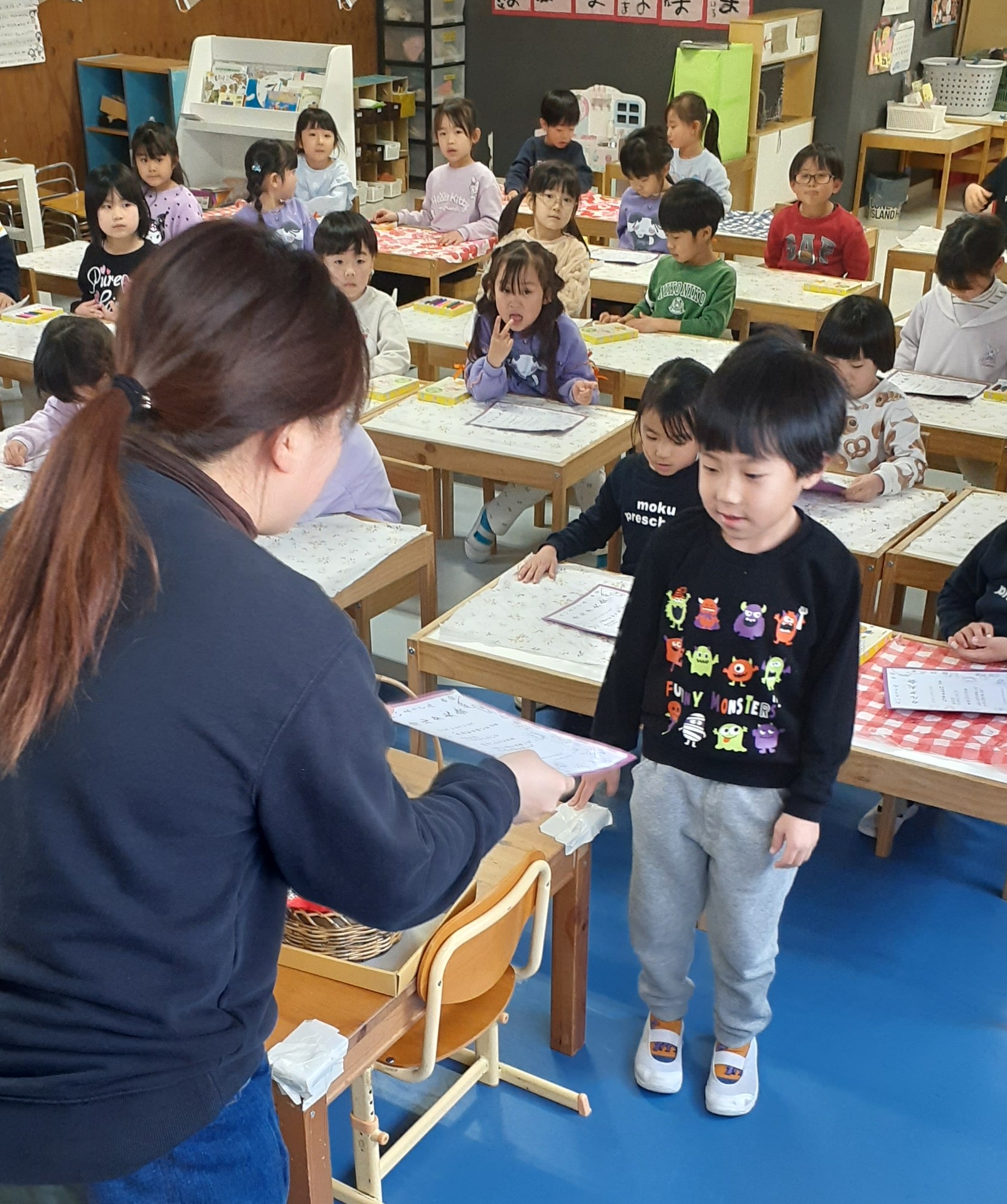 各クラスのお部屋で行いましたよ。