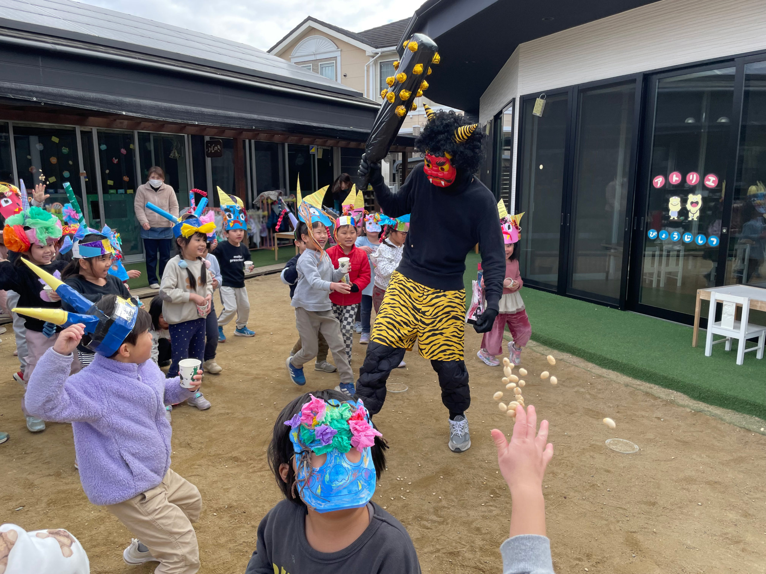 アトリエさんに鬼がきたので、みんなで豆まきしました👹