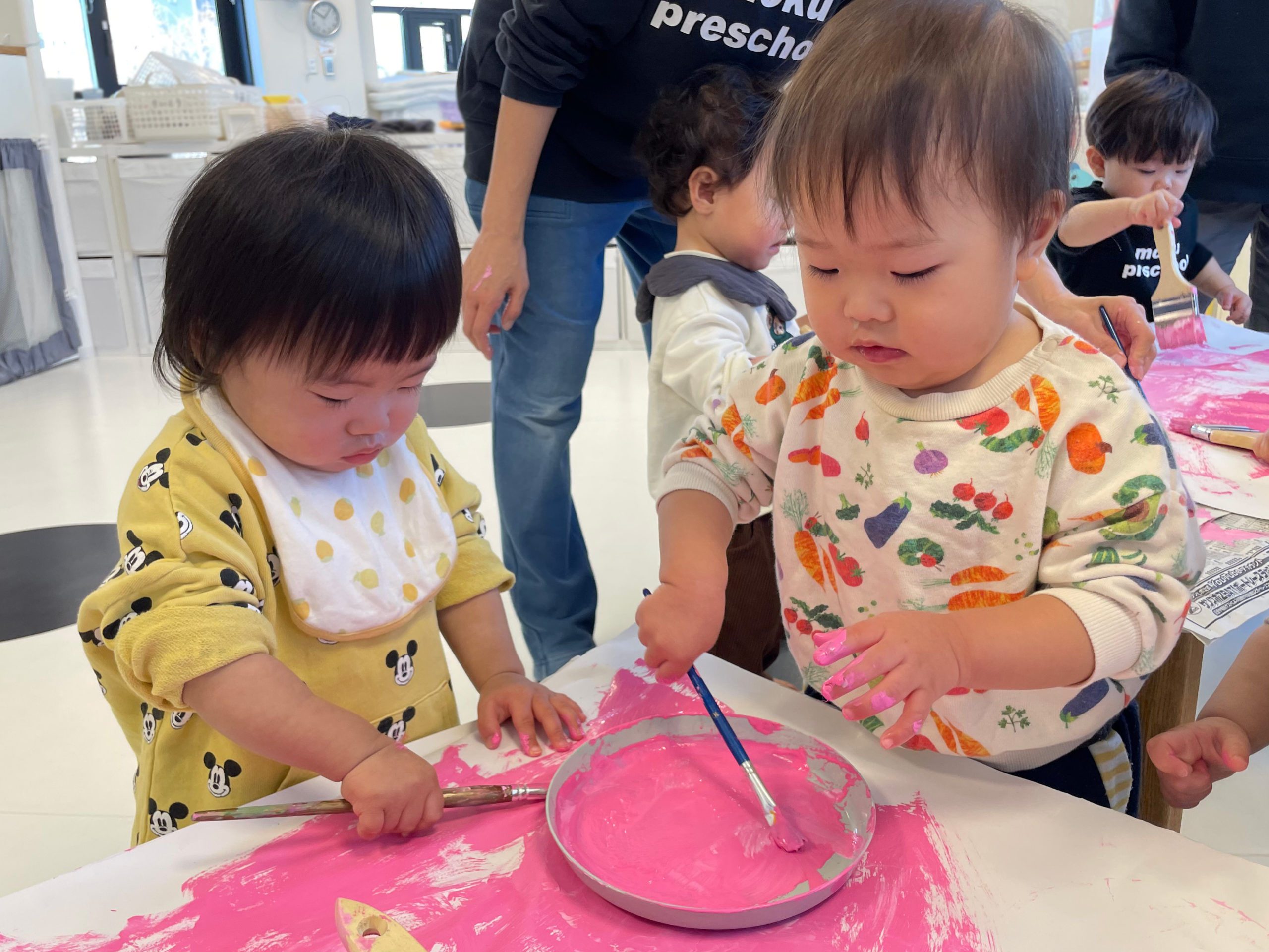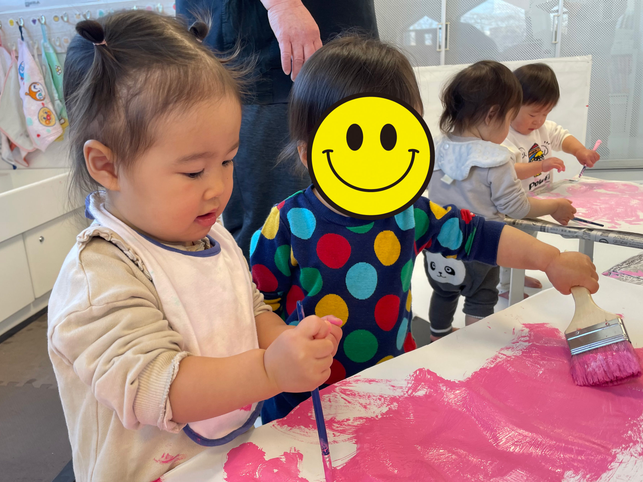 ゆずのき組さんが絵の具遊びをしました🎨
