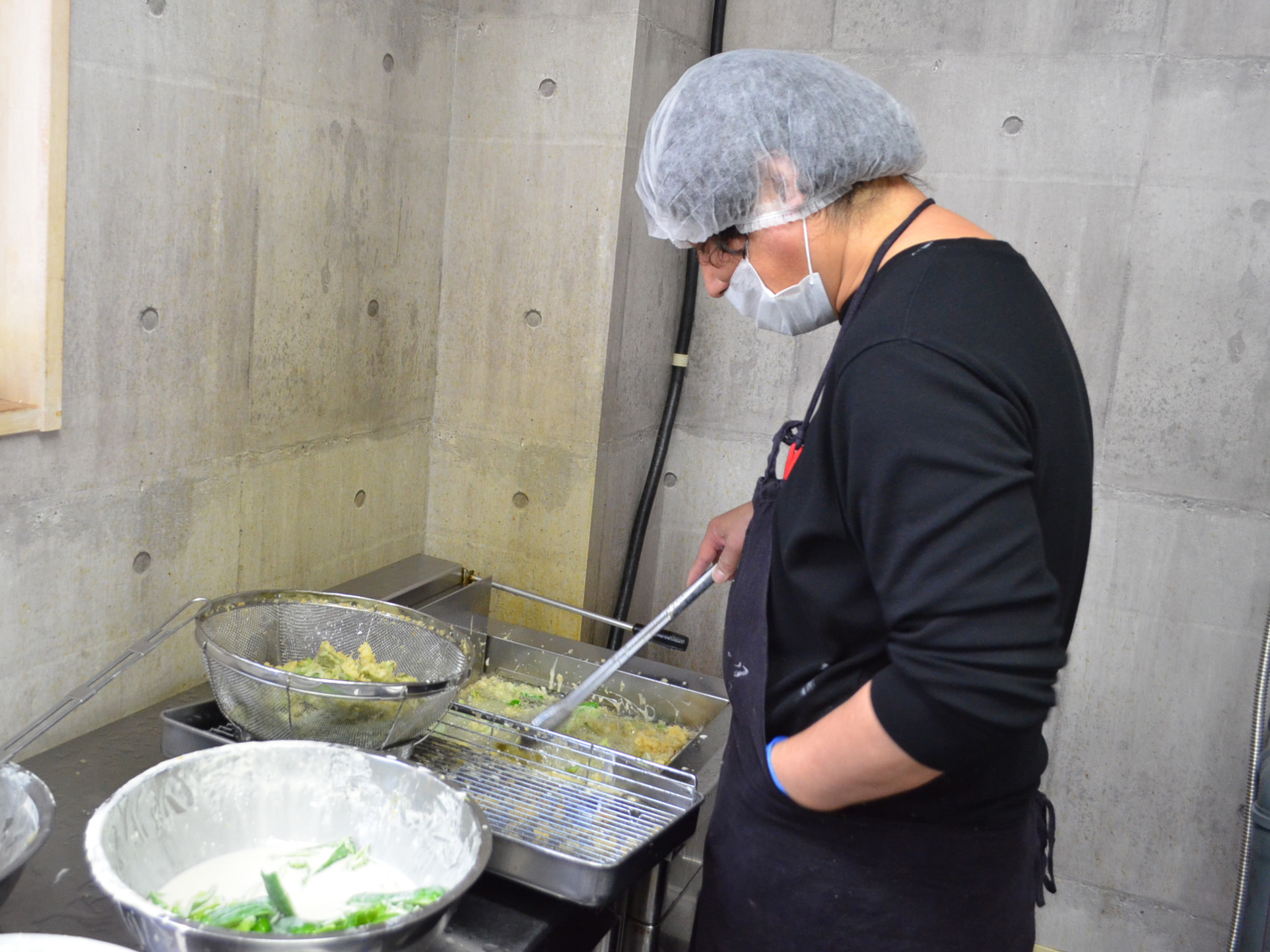 天丼のてんぷら粉は小麦粉にプラスしてベーキングパウダーを入れています!