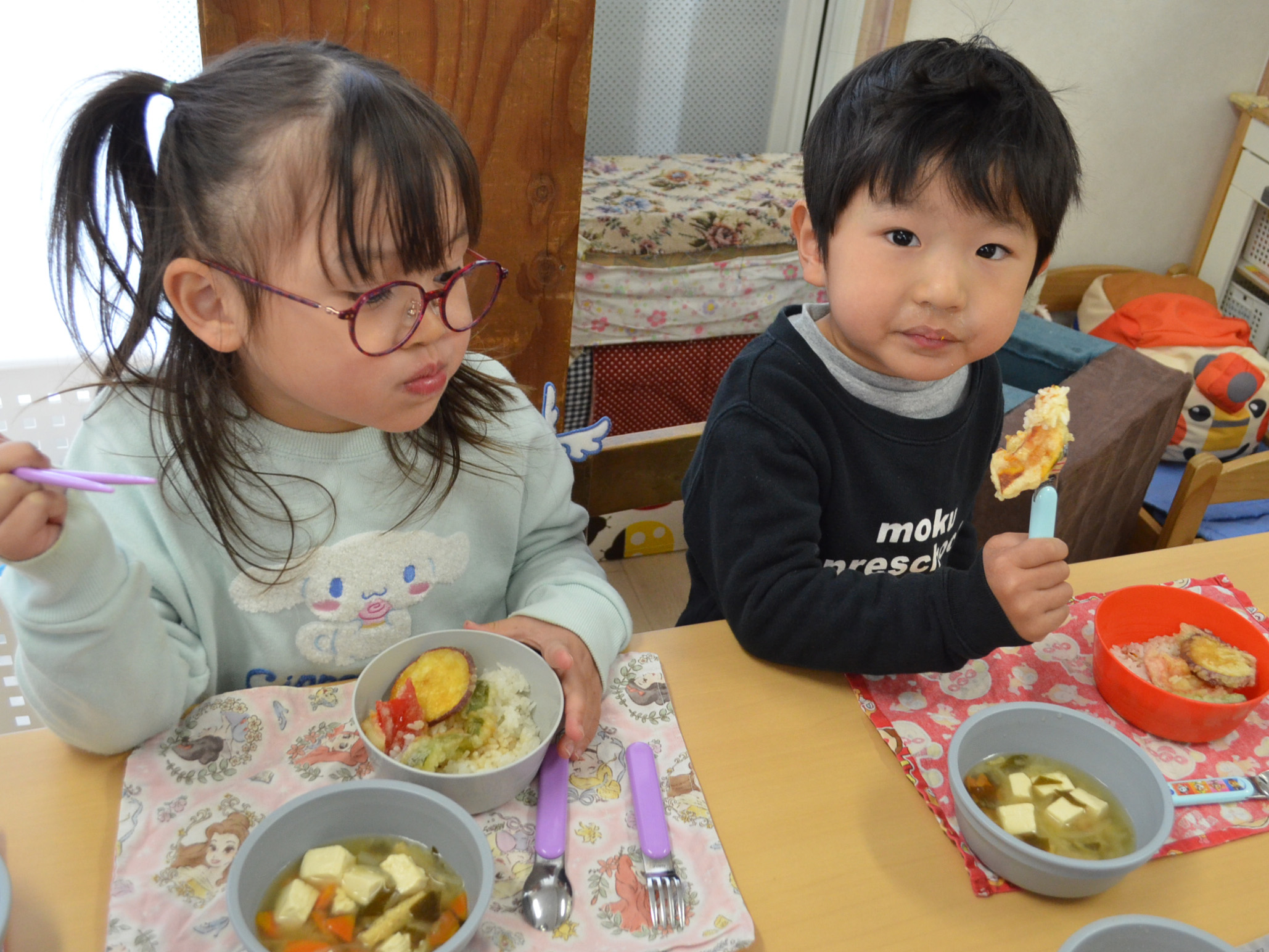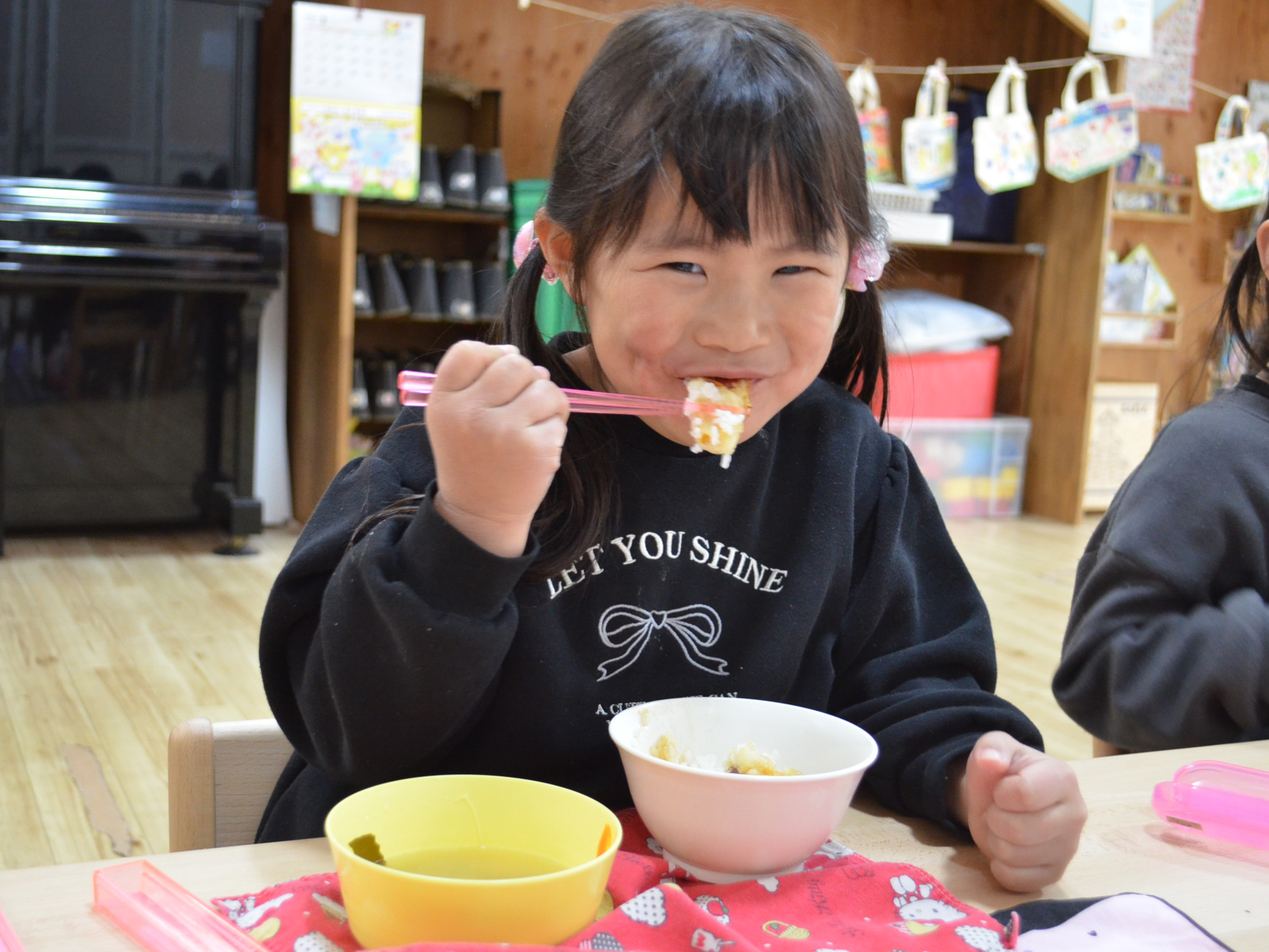 「さつまいもやかぼちゃは甘いねと言ってパクパク食べていた」