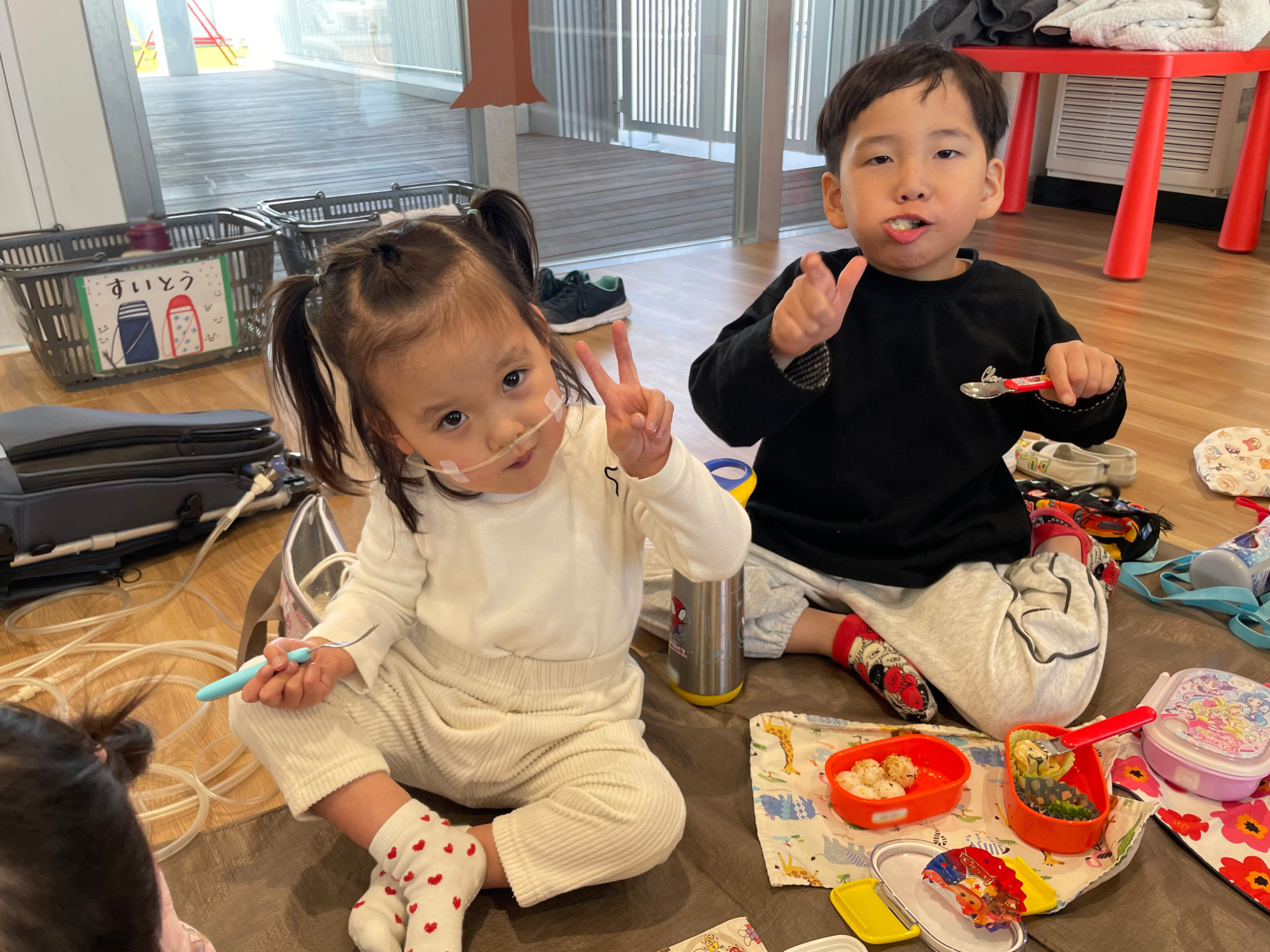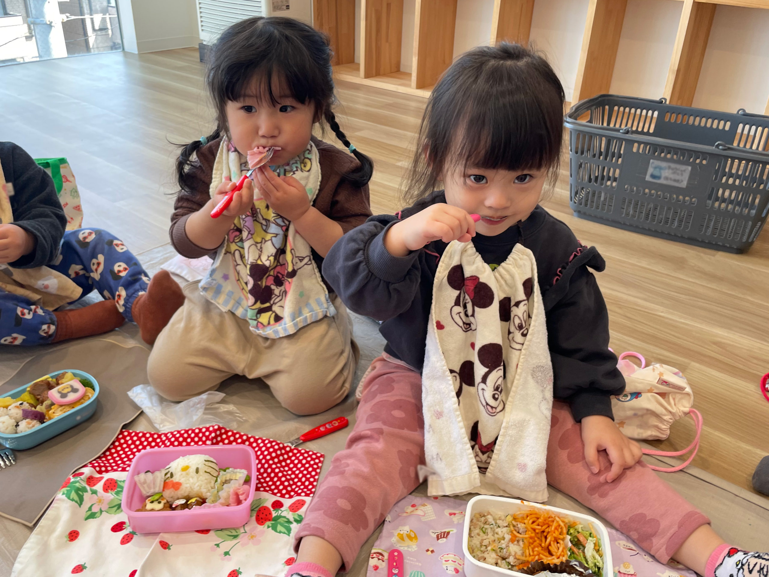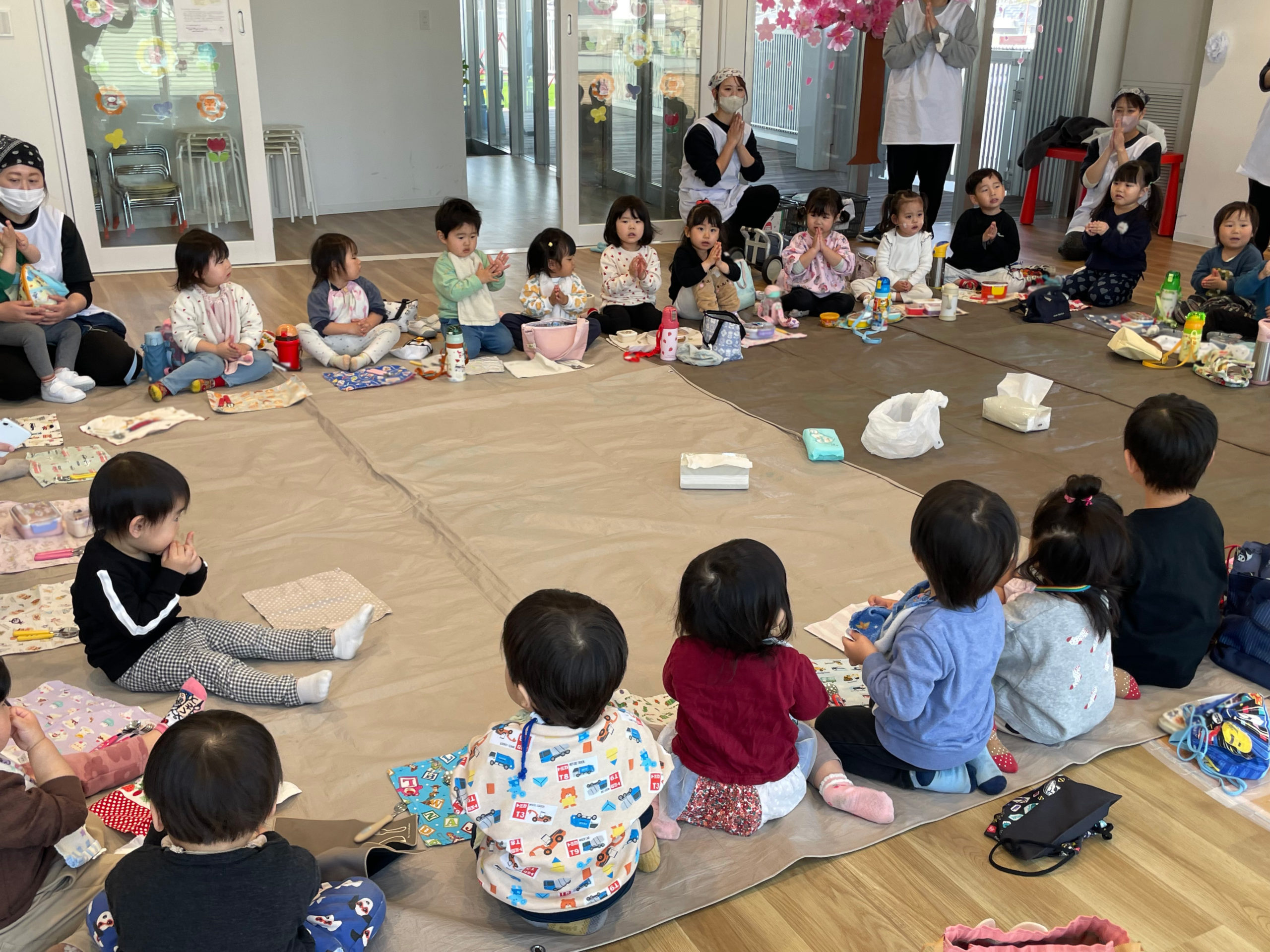 もものき組さんとくりのき組さん一緒にシートを敷いて食べました😆