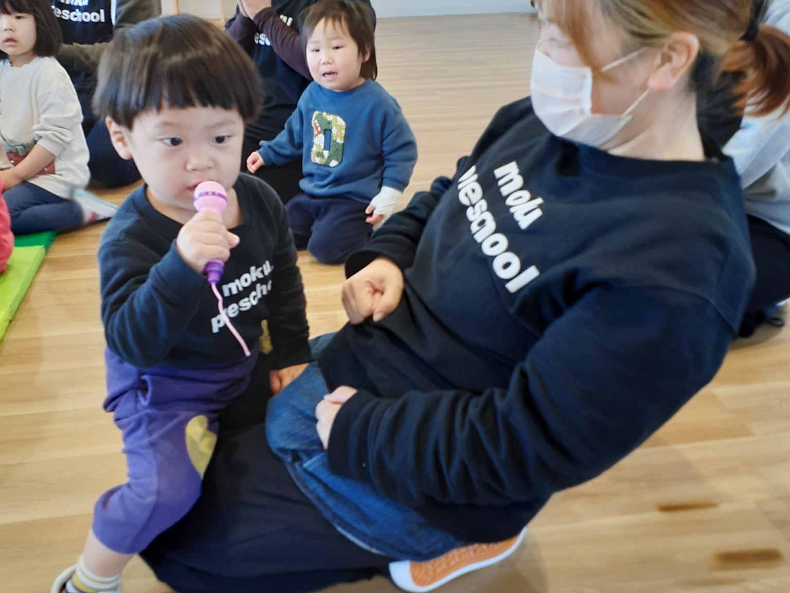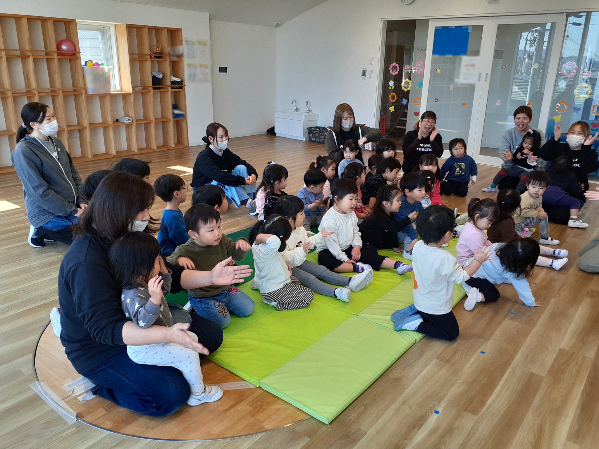 HOME // こどもたちと日々 // もものき組とくりのき組合同で朝の会をしました☀️