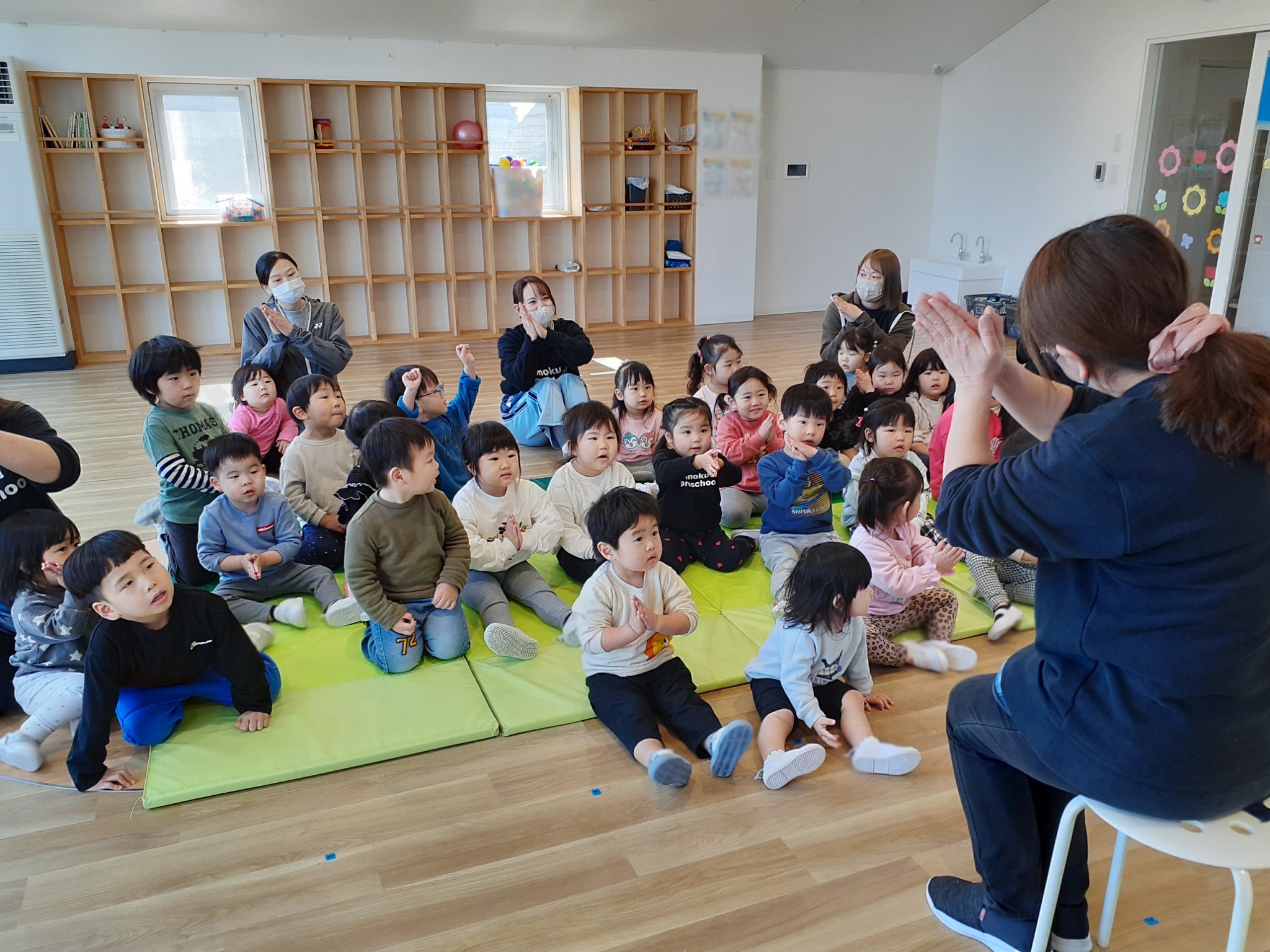 一緒に手遊びをしたり、お歌を歌ったりました♪
