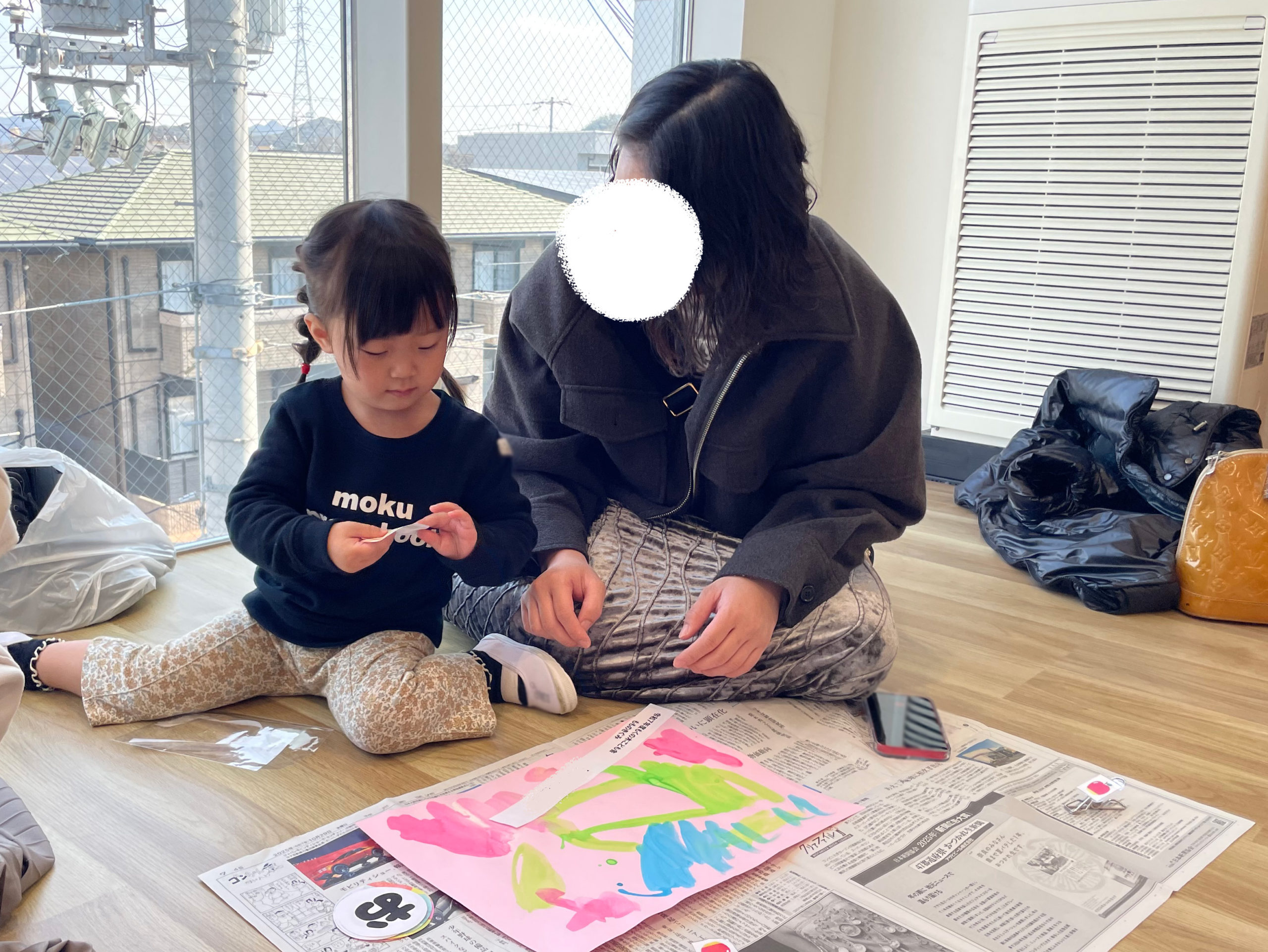 おうちの人と一緒に「おもいで」の表紙を製作しました🌼