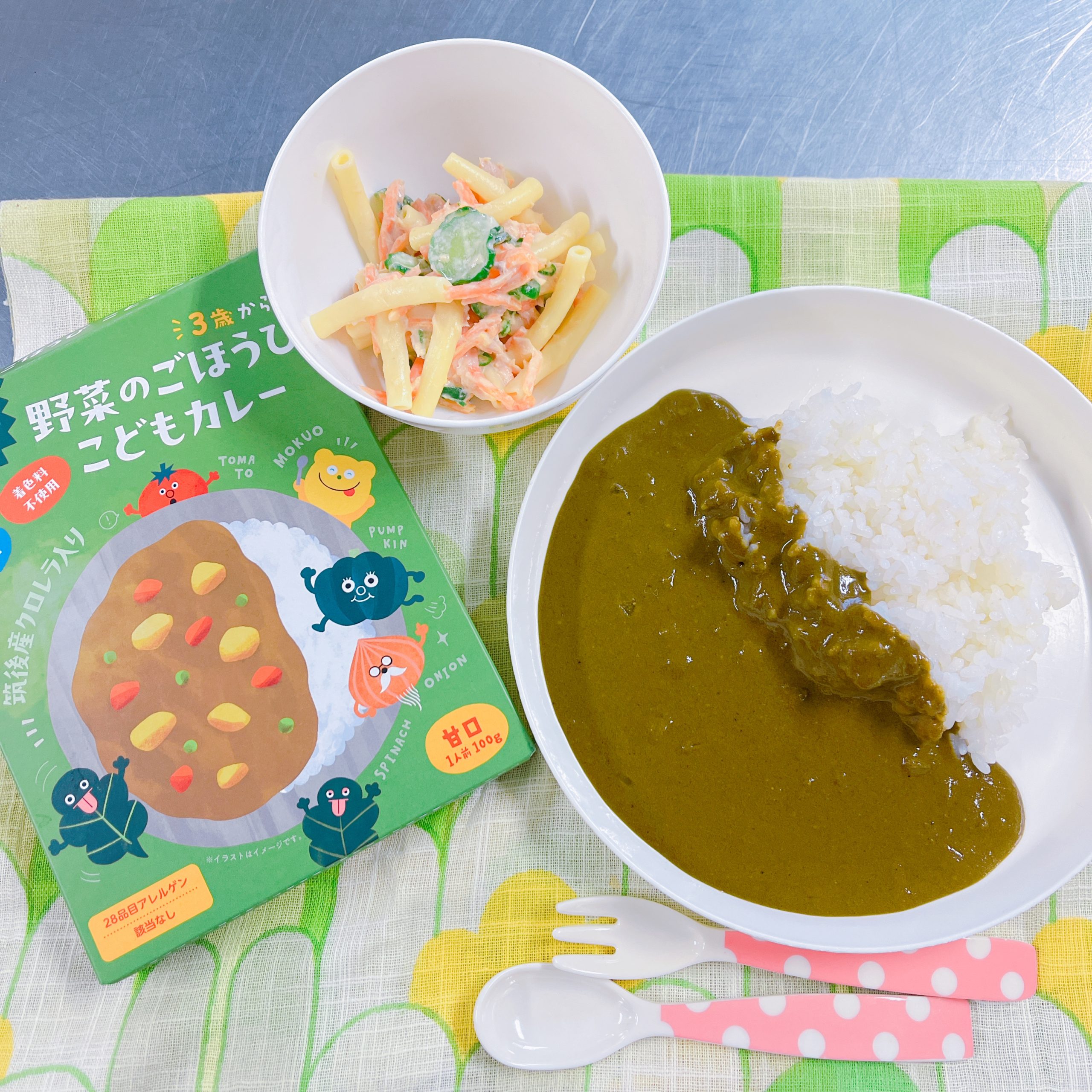 今日はこちらの野菜のごほうびこどもカレーの日でした❣️お野菜たっぷり栄養満点なレトルトカレーです🥬🥕🍅クロレラ入りで、ビタミンやミネラルが豊富です。忙しい日に取り入れてみて下さい。
