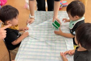 ビリビリ折り紙、何に見えるかな☺️(そら組・たいよう組)